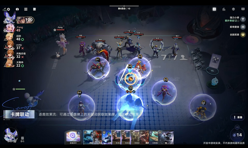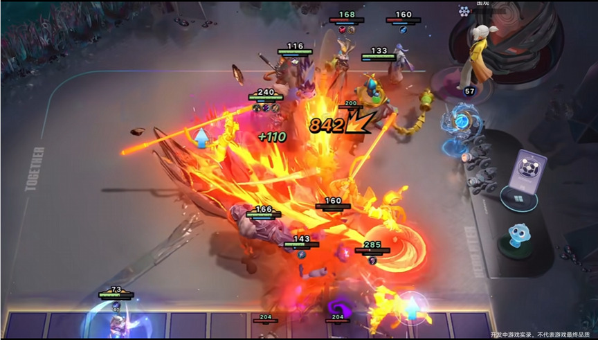 特别值得注意的是,“王者式”的策略体验甚至保留了玩家构成不同阵容形态的可能性,并通过天赋等系统营造了更深入的构筑空间——无论是喜欢”养大哥“追求单人制胜不断找到强化核心英雄的方式,还是追求团队均衡发展为具备相同关键词的英雄博取强化能力,甚至激进的快速推进游戏流程进入后期谋求”完全体“,这些在moba游戏中常见的构筑姿态通过天赋、英雄的交互在牌局上得以充分再现。