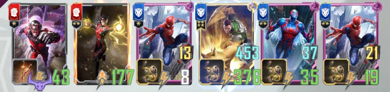 黄钢减员神器,根据对手卡组看需不需要,有些卡组可以合成4星5费蜘蛛侠后用钢铁侠下场率先减员,贴膜好用。