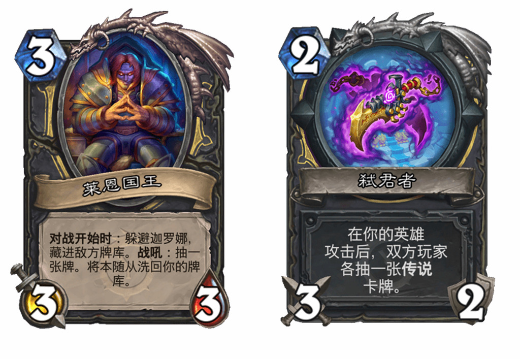 奇闻。战吼:如果莱恩国王在对手手牌中,将其摧毁并将敌方英雄的生命值砍半。