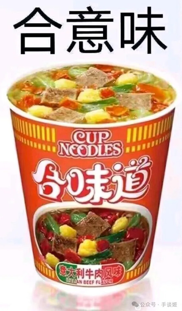 而“何意味”这个词,是日语“何の意味”的缩写,翻译过来就是“什么意思”,国内网友把の去掉,直接“何意味”,用来表达对一件事或者一个人的困惑,又或者只是发着玩,至于“何意味”和日清公司的产品“合味道”的联系……感觉和把哈基米称为小猫一样被人所不理解,姬只能理解为两个词的发音很像吧。