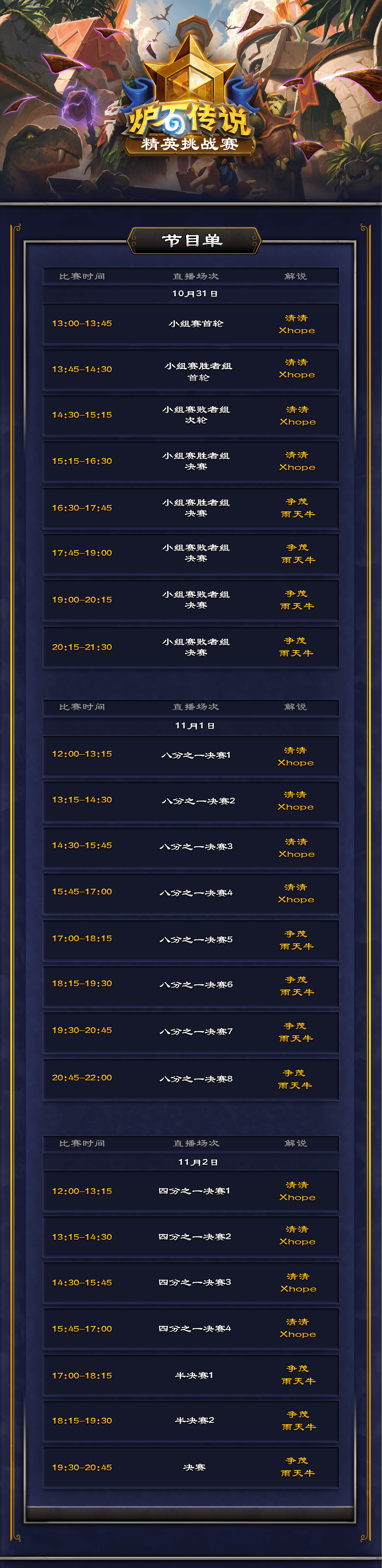 - 淘汰赛:11月1-2日12:00起
