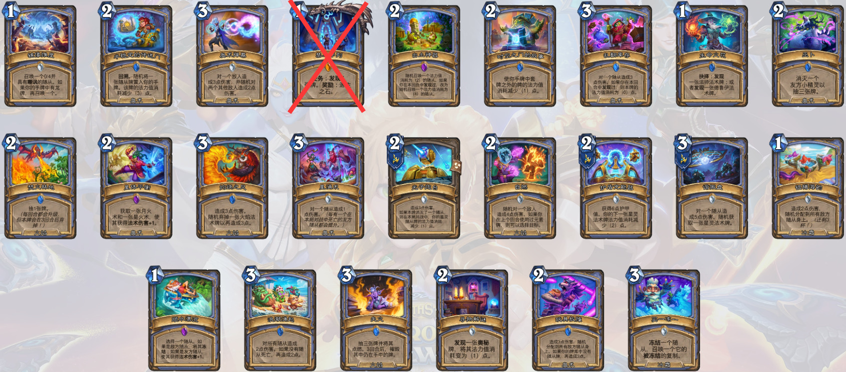 3费:共78张,比较好的牌有永恒雏龙、量子反稳定机、乱翻库存、星涌术、满怀希望的树妖、亢祖、虚空辉光舰(如果卡组有星灵牌可以找到)、爆炎流星、谐振盘、躁动的愤怒卫士、落难的大法师、浪潮涌起、潮汐之池、失火、混调师、海关执法者、冰冷整脊师、梦想策划师杰弗里斯、暗月魔术师、买一冻一、甜蜜雪灵等20多张,占比约27%;