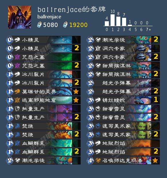 开局:32烈焰小鬼、亡语加攻的邪魔仆从、凶恶的滑矛娜迦、鱼人木乃伊、炽烈烬火强化场面,星空漫游者有一点点机会buff到第二个德莱尼;火羽精灵/啮齿绿鳍鱼人/甲虫钥匙链/栉龙给养料(鱼人有机会出超时空鳍侠回收起手的找临时牌、火鳃鱼人给突袭和剧毒卡乌龟,甲壳虫能找直伤、潮池学徒、疯狂生物套娃找3、影像操作师找临时德莱尼、亡语抽火抽冰。)