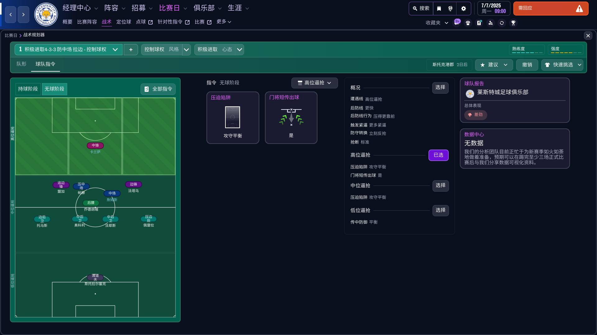 没有一成不变的战术,《足球经理26》里对手的战术会变,我们也要跟着调。我总结了几种常见情况的调整方法:
