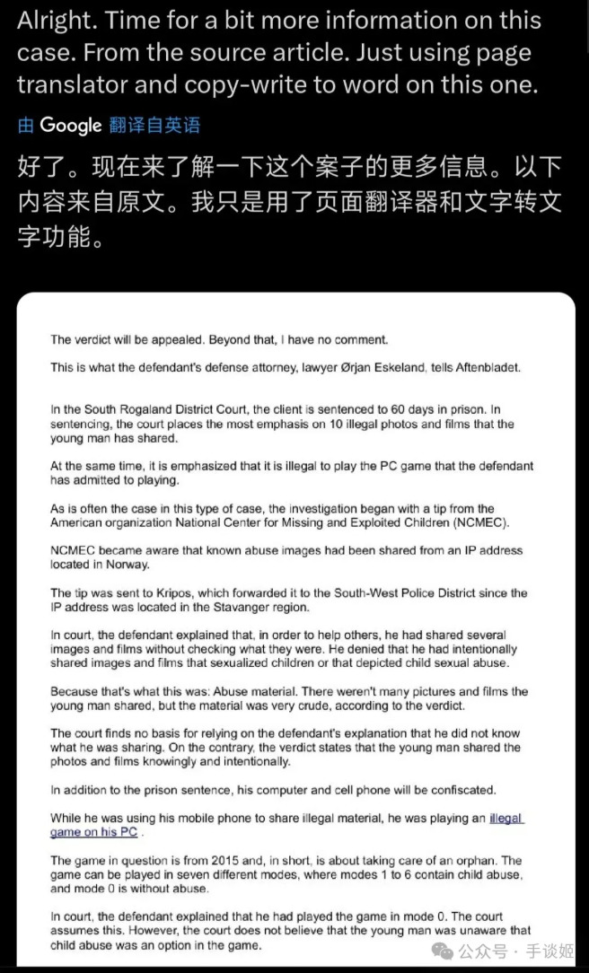 那么,事情真的是这样吗?不着急,有X上的热心网友去挪威当地的付费网站上下载并翻译了报道原文。