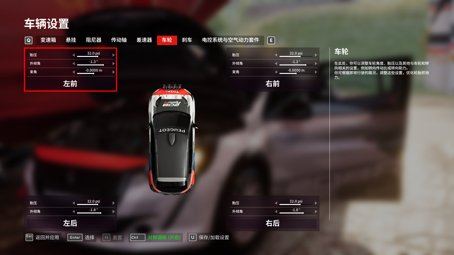 由于拉力赛道比传统赛道更难驾驶,进入游戏时,游戏会默认开启各项辅助功能,来帮助你快速熟悉游戏,尽快上手。前几次游戏体验时,你会觉得车辆很难操控,同样的操作,由于赛道状况、时间、路面材质、车辆自身特性等原因,带来的车辆变化是完全不同的。在现实世界中,拉力赛车就是如此,你先放慢车速,很快就能熟悉推荐入门车辆的驾驶方式。当你慢慢熟悉后,摸清了每辆车的优缺点,还能对车辆的细节进行调整,比如变速箱、悬挂、阻尼器、传动轴、差速器、车轮、刹车、电控系统和空气动力学套件等。