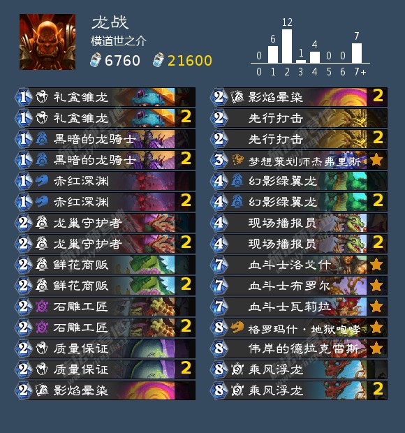 另一方面,虽然旧卡组也还是占了小半壁江山,任务战和节奏/水蛭DK依然主流,尤其死骑仍大量带着削弱了的血虫感染和火龙(甚至还是双血虫感染),连法强德还有人带,而且还有更旧更前朝的卡组试图和补丁意图叫板……但不管怎么说,就算是旧卡组换成了更旧的卡组,好歹也是换了一批,多少还是有些新鲜感的。