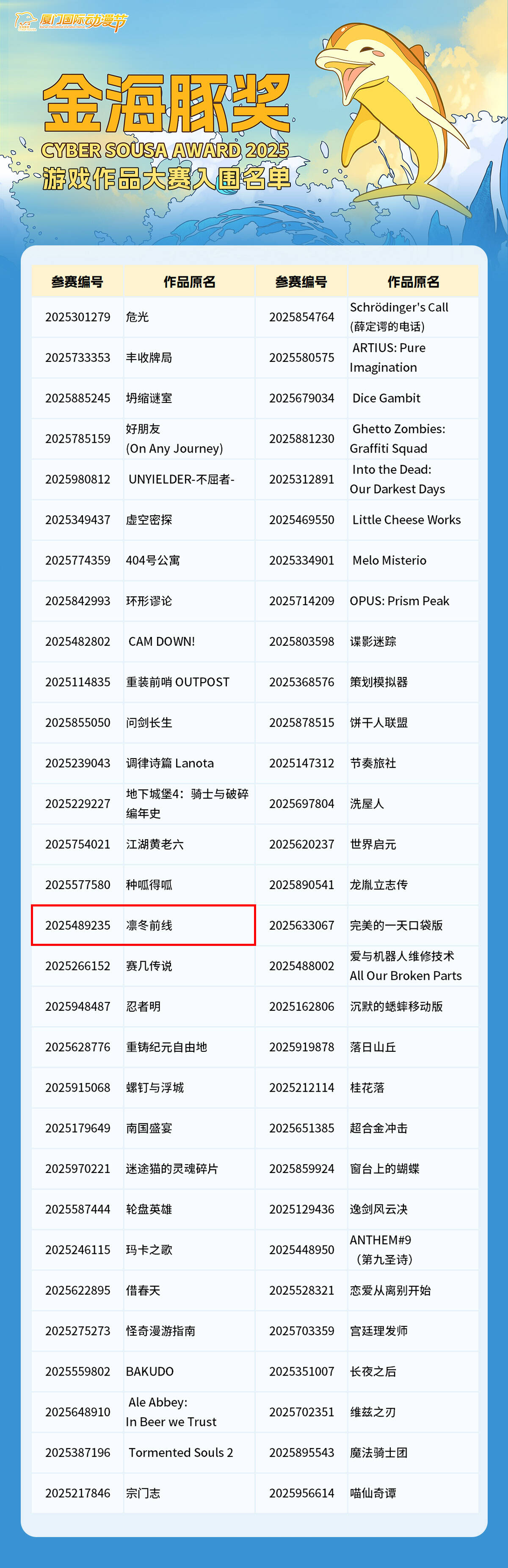 2025年第十七届“金海豚奖”游戏作品大赛入围名单