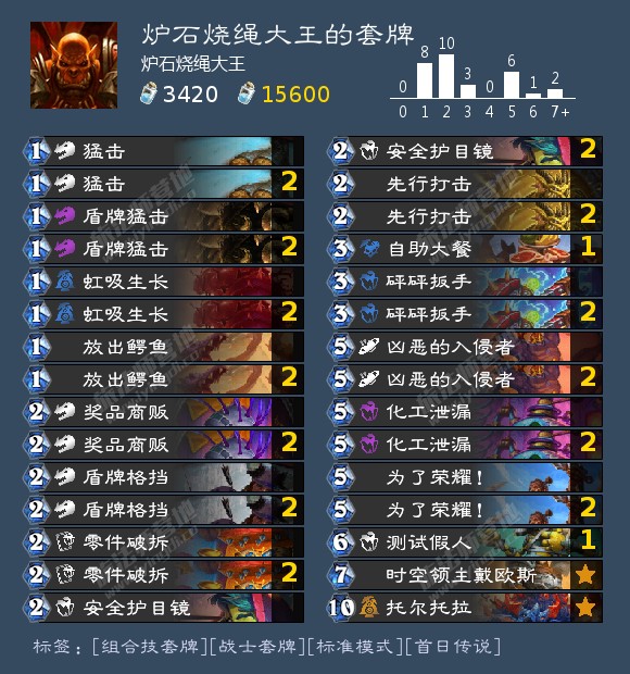其次推荐卡组:绷带牧,烟花贼,我个人喜欢这套战士挺丝滑,启动也稳定!打大环境dk和术士都是大优势!