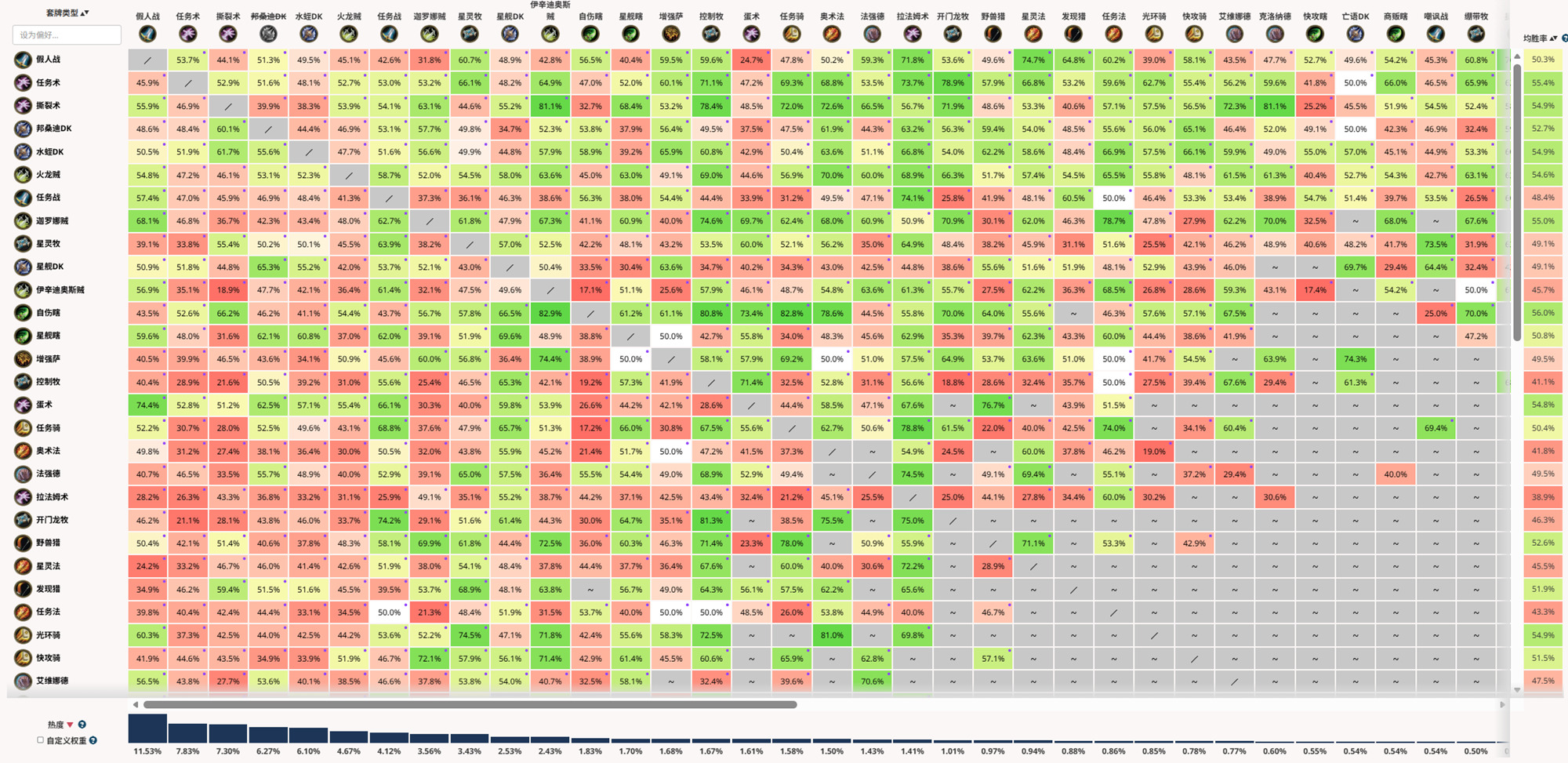 卡组对阵胜率表(方便大家查询自己环境中的卡组优劣情况)