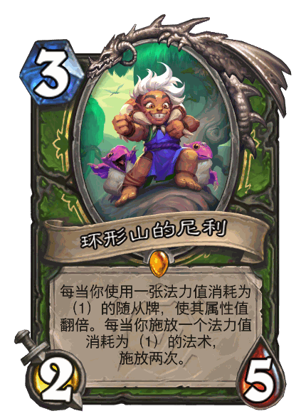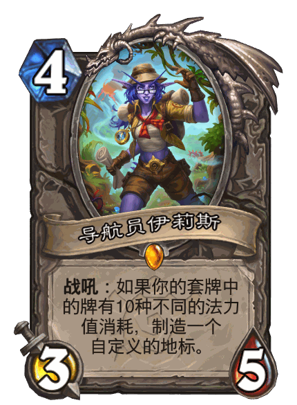 伊利斯是卡组中最灵活的一张卡,带来了许多制胜手段。伊利斯的一费发现可以给异星减费,五费发现可以配合斥候偷费。斥候接点五费发现标,就是拿两个减四费的法术,其中不乏遥控狂潮这样的优质节奏卡,还有顶级恐龙学配合异星,死亡翻滚针对特殊对局等妙用。如果是复制发现地标的话,无论伊利斯选的顺序如何,地标永远是先复制再发现的,这意味着复制斥候可以一次性拿到三张减费法术。复制标,尤其是一费复制标,可以用来配合尼利造巨人。卡组有观鸟和buff姐妹的buff,一费有冰片和被乐园减费的观鸟,双尼利能翻四倍身材,可以造多个超大随从平推对手。需要注意的是,尼利和莱尼莎一样,即使复制多个也是不能多次翻倍法术的。当然,伊利斯更为常见的是捏五费突袭加攻或突袭叠甲来处理场面度过中期,后期费跳高后也可以捏十费加攻来爆发输出。熟记留牌时提到的后手23硬币跳5的回合规划能更好地利用伊利斯。