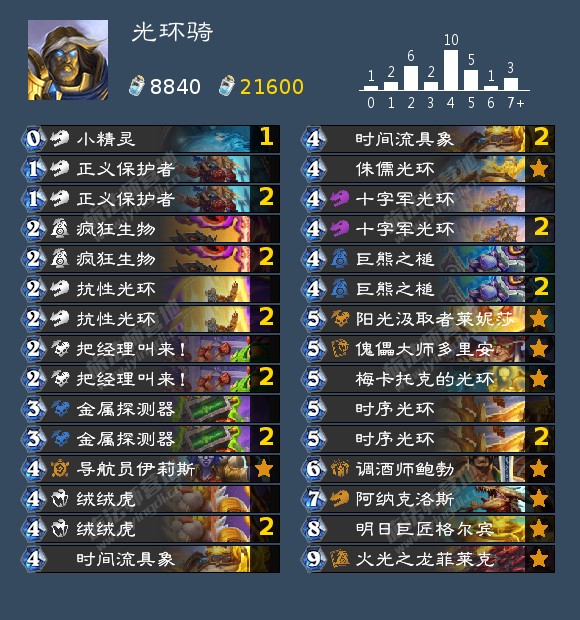这套卡组是HDT记牌器上统计的胜率最高的构筑,为57.5%,小编测试下来战绩21-10.