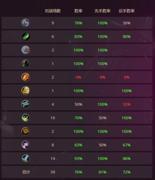 打dk总体来说还是难打的,我的胜率有点虚高,看了一下我打其他分段时面对dk的胜率有80多更夸张,感觉应该是卡组信息差和技术优势的缘故,体感上不觉得是优势