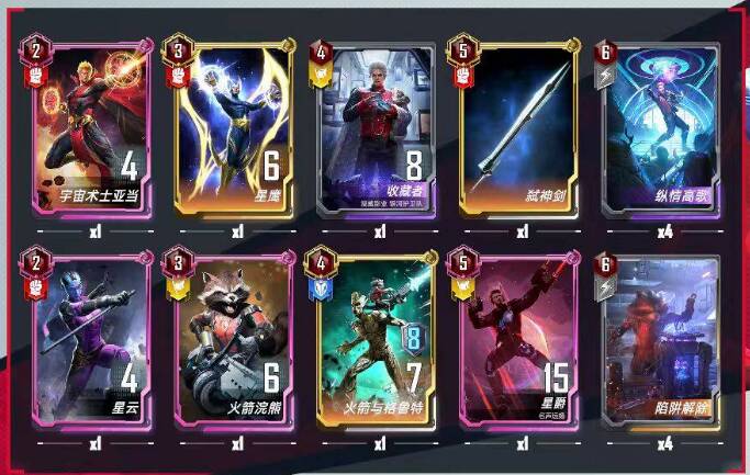 第五回合 蹲3本 重复上述操作 罗德改良,打出2罗德以及响应改良援军卡 升4本。在这个过程中遇到手牌不够,尽量卖出星爵的赏金卡,卖出的优先级为:星云 >火箭> 亚当