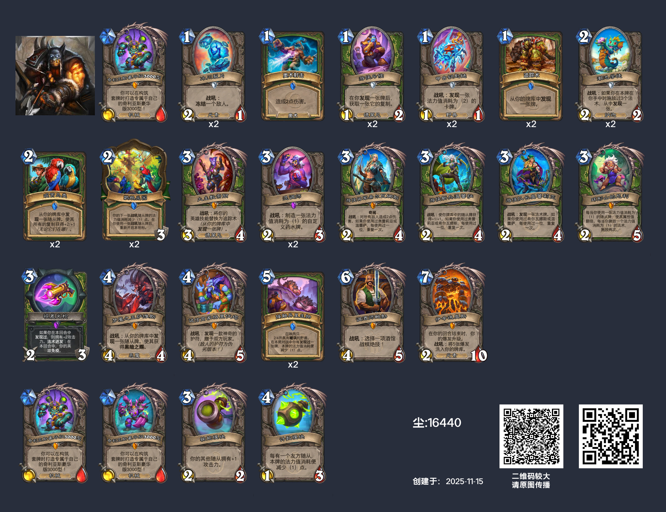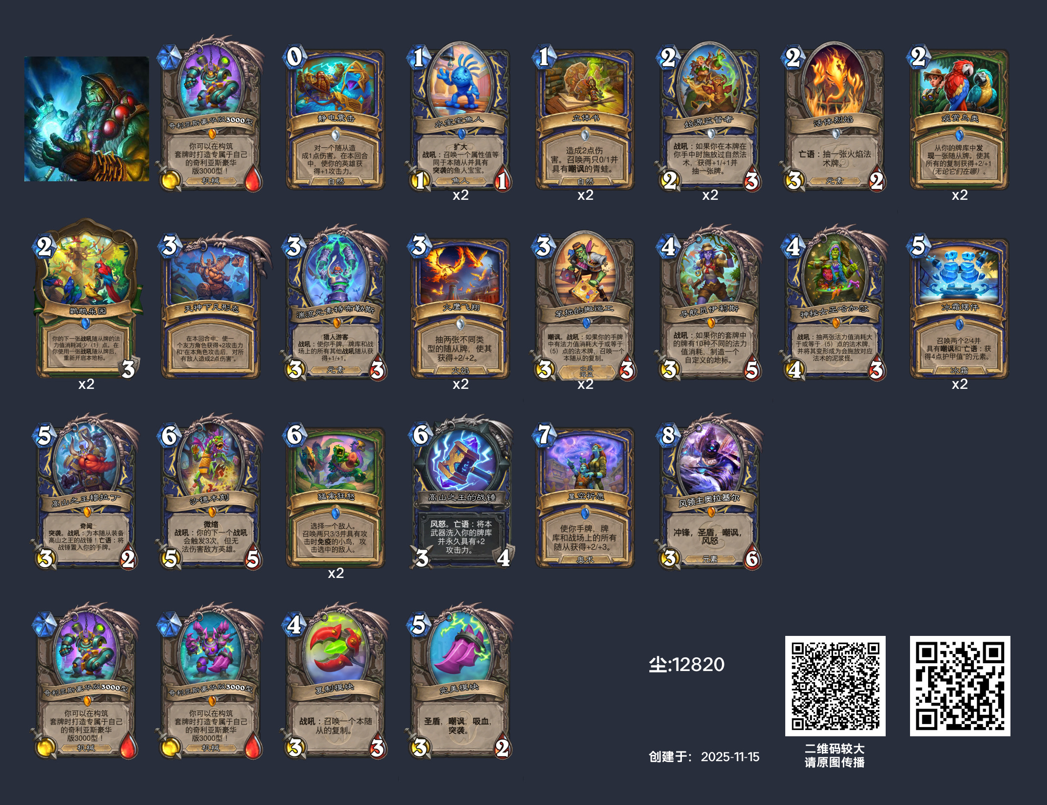 数据为匿名分享仅供大家参考,鼓励大家做更多不一样的尝试,搬运是客观的,为尊重原卡组使用者/不与之观点冲突,我们这边的搬运不会添加主观意见,有可能一套卡组就有多位玩家使用一起累计数据。)