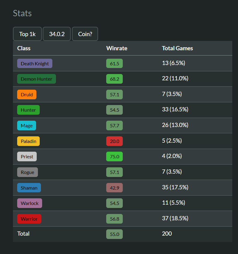 HSReplay 全服传说前1000数据 (微信小程序: HS石炉之家)