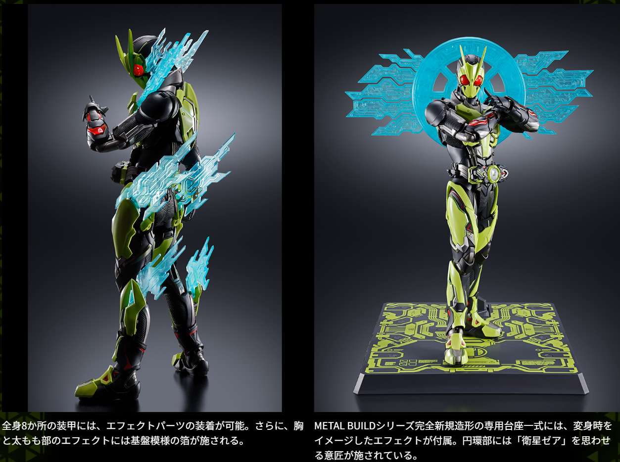 仮面ライダーシリーズより、「仮面ライダーゼロワン」がついにMETAL BUILDに登場!ヒーローとしての説得力を新機構・素材面・各種エフェクトにより徹底追求。新時代の1号が今、誕生する!