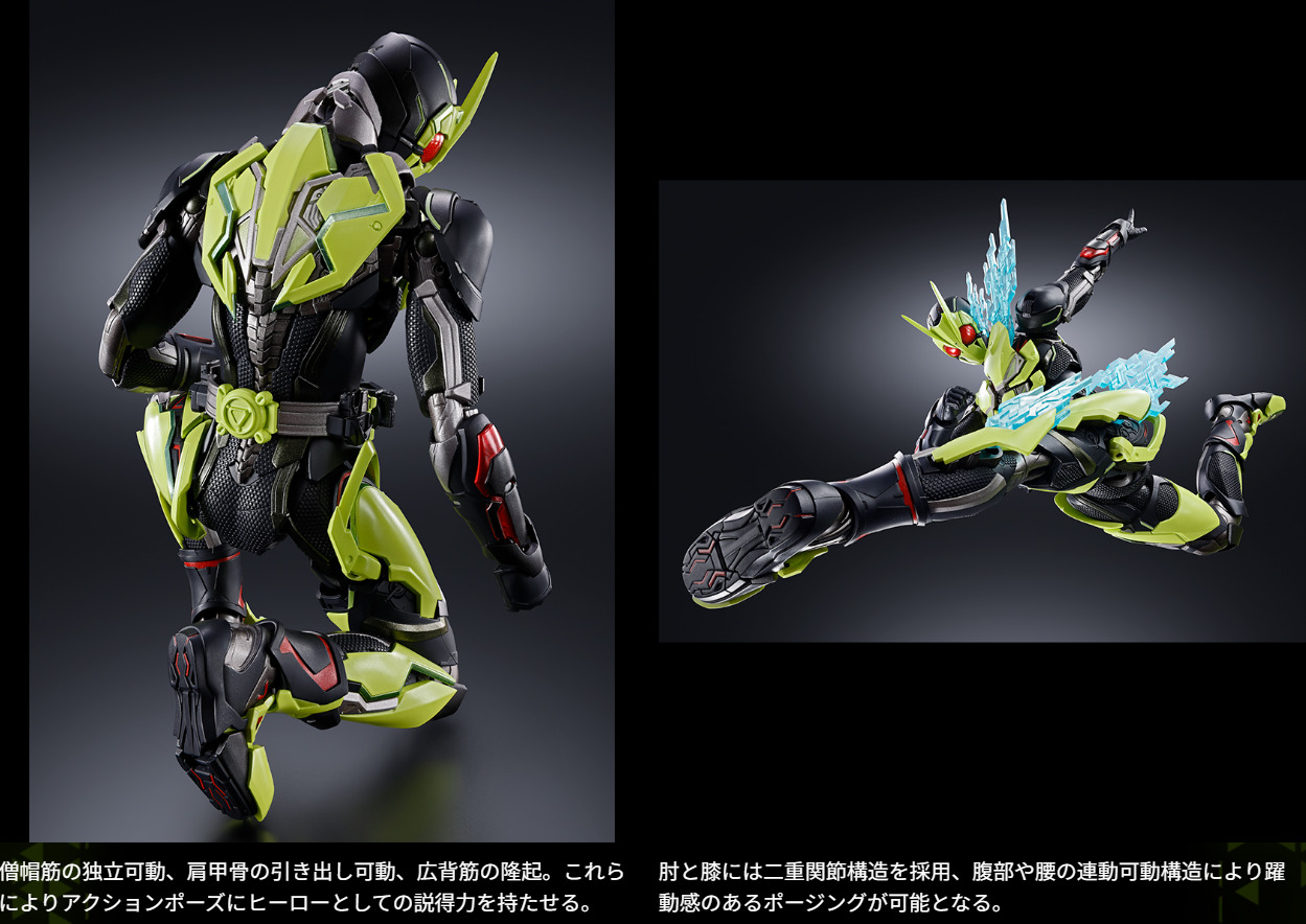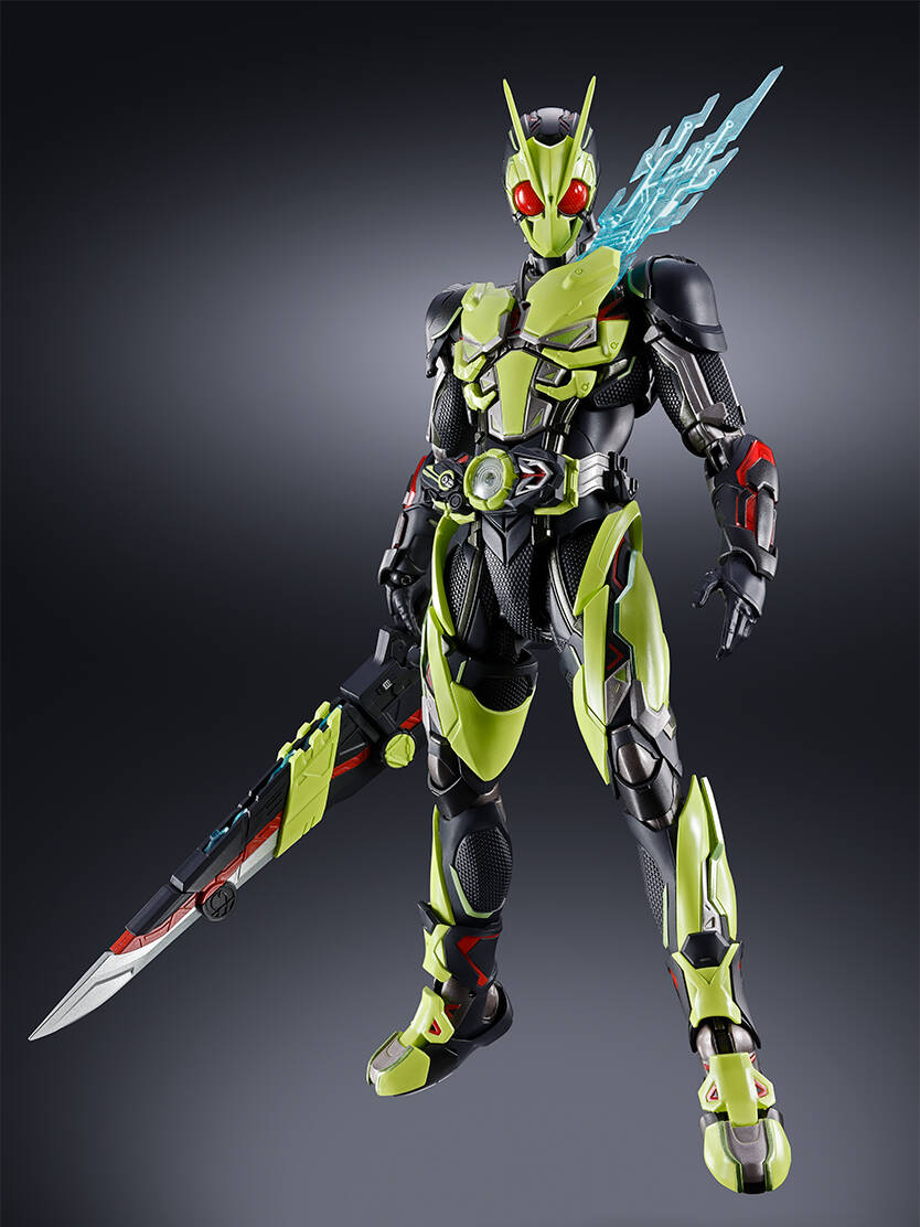 プロダクトデザイナー山下貴斗氏デザインアレンジ。ヒーローの体躯をベースに設計した新機構の数々。関節をはじめとした各所にダイキャストを使用。さらにメタリック彩色など素材面からも説得力を生み出す。劇中の演出を立体物に落とし込む豊富なエフェクトパーツが付属。新たに構築されたヒーローが夢に向かって今、飛び立つ。