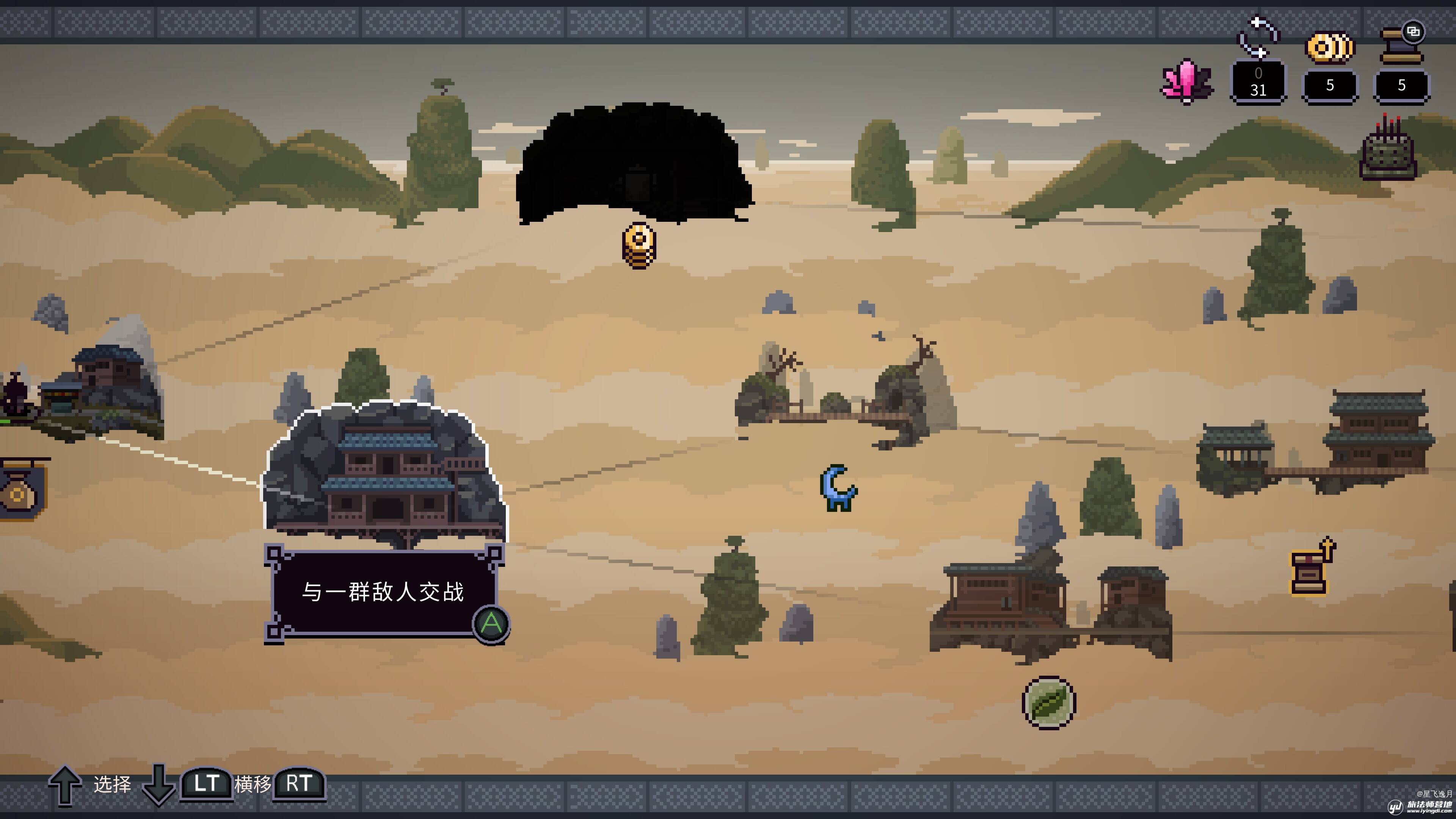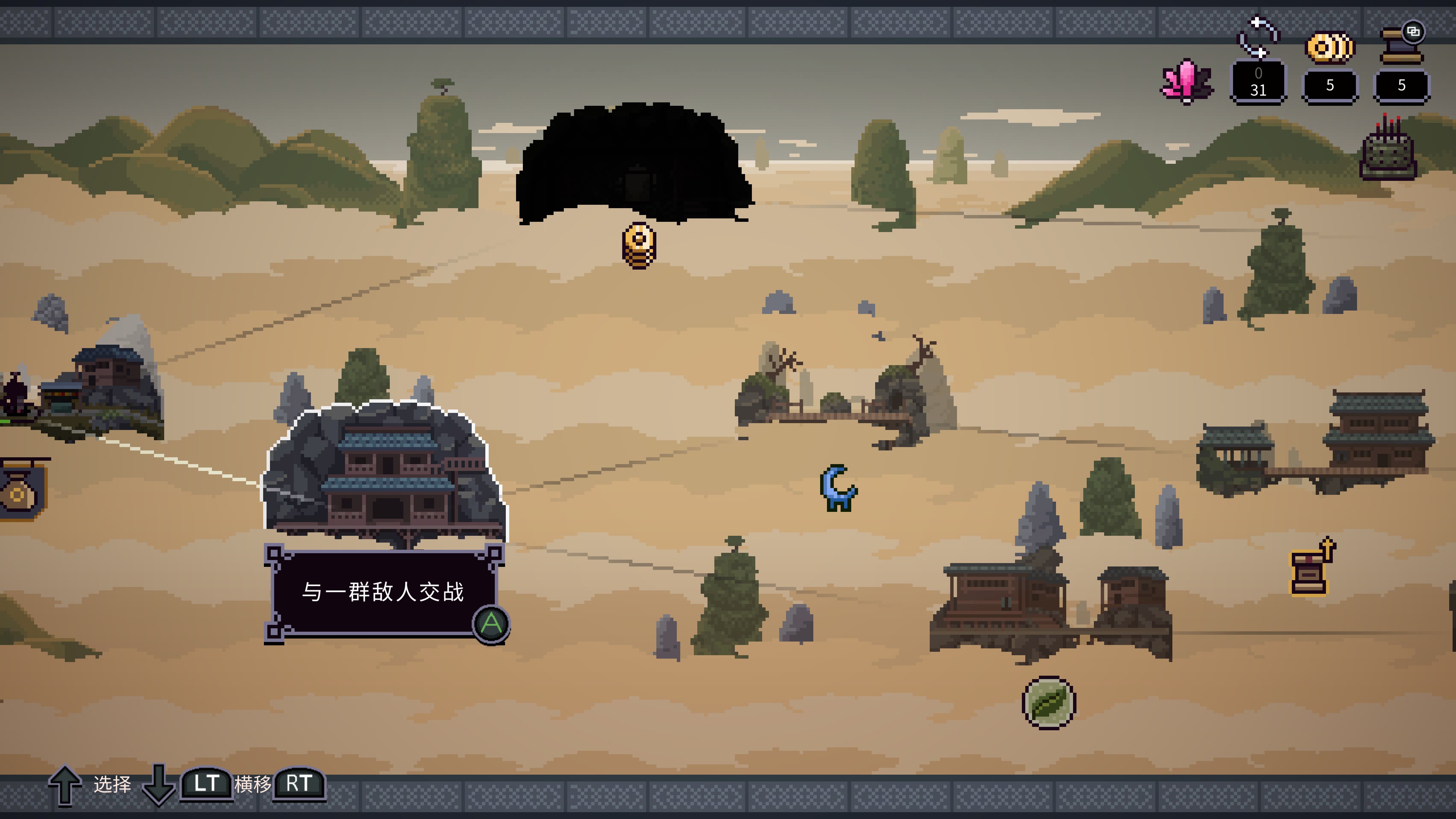 本作的地图探索为类似爬塔的树状图,我们可以自行规划前进路线。除了商店外,大部分的关卡奖励都需要在战斗胜利后才能获得。奖励类型分为金钱、技能学习、技能升级等等,部分关卡还有次要任务,比如使用推演次数不超过3次、前3秒不攻击敌人、完成2次借刀杀人等等,达成条件后可以获得额外的金钱或花瓣。不过没必要为了拿全奖励而死磕,保证自己无伤过关更加重要。