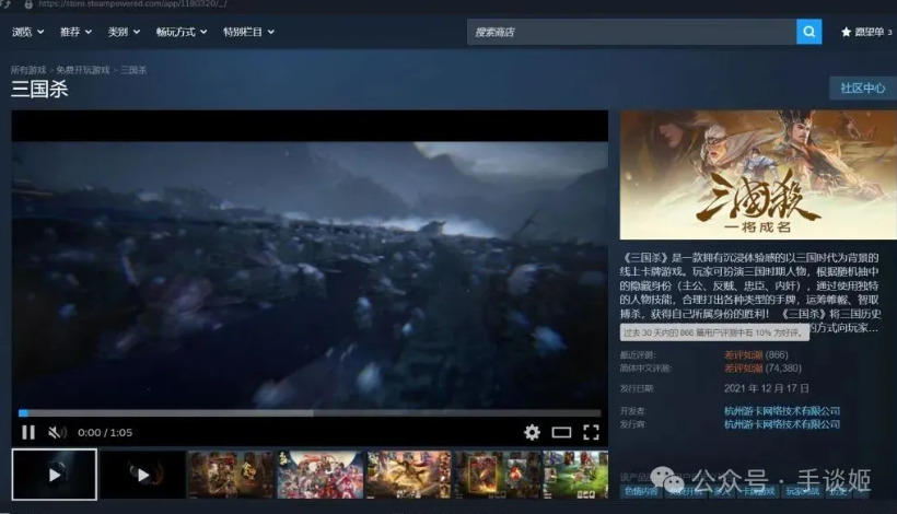 提到中国游戏界的史诗级作品,很多姬友大概会讨论半天应该抬哪个上此宝座;但如果提到中国游戏界的史诗级粪作,大概所有姬友都会统一端出Steam平台《三国杀》那震撼人心的差评率。