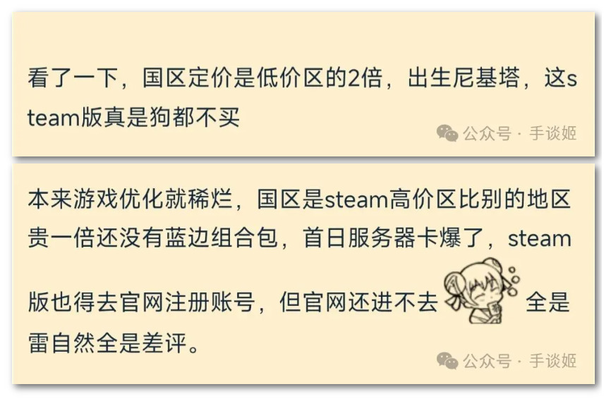 至于Steam平台上的差评区更是骂得异彩纷呈,如果有想学习怎么骂人的姬友,真可以考虑去简中区看看。姬不放图不是因为不想截图,而是因为大家骂得非常有花样而且攻击性极强,打码都打不过来。