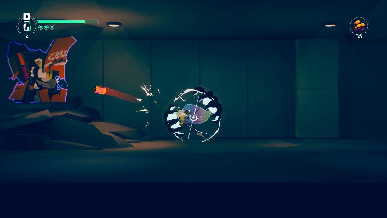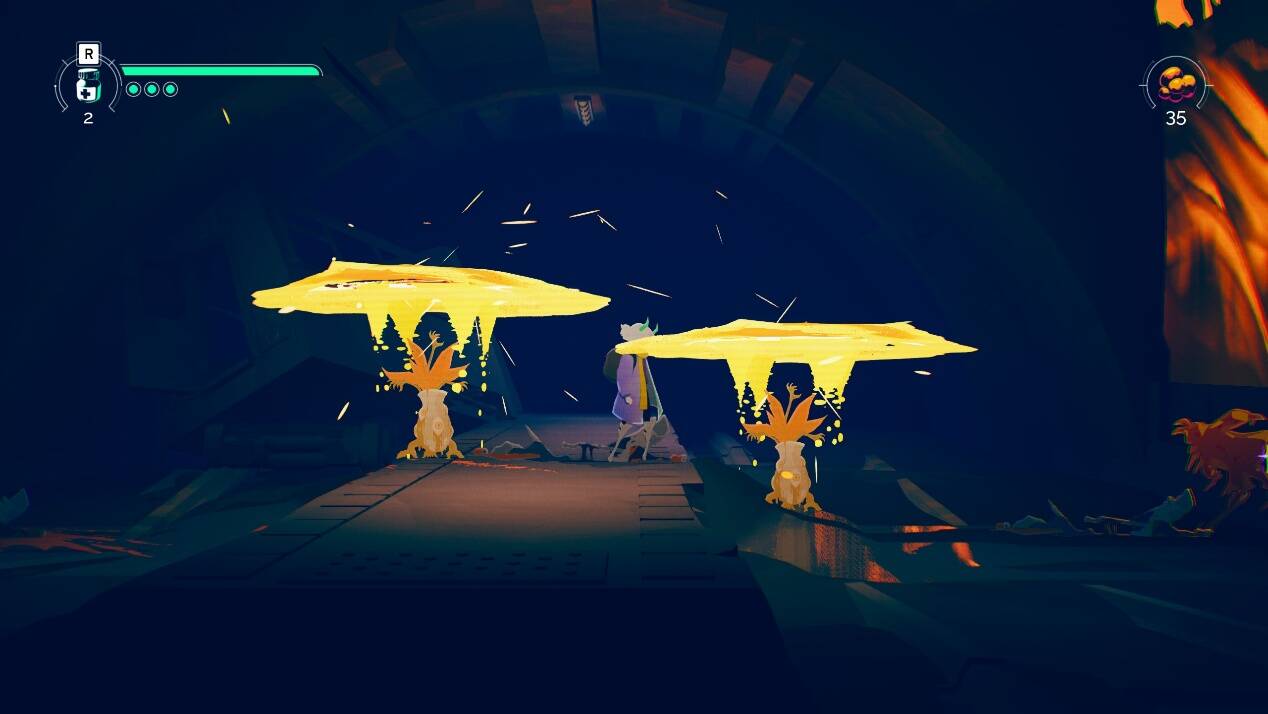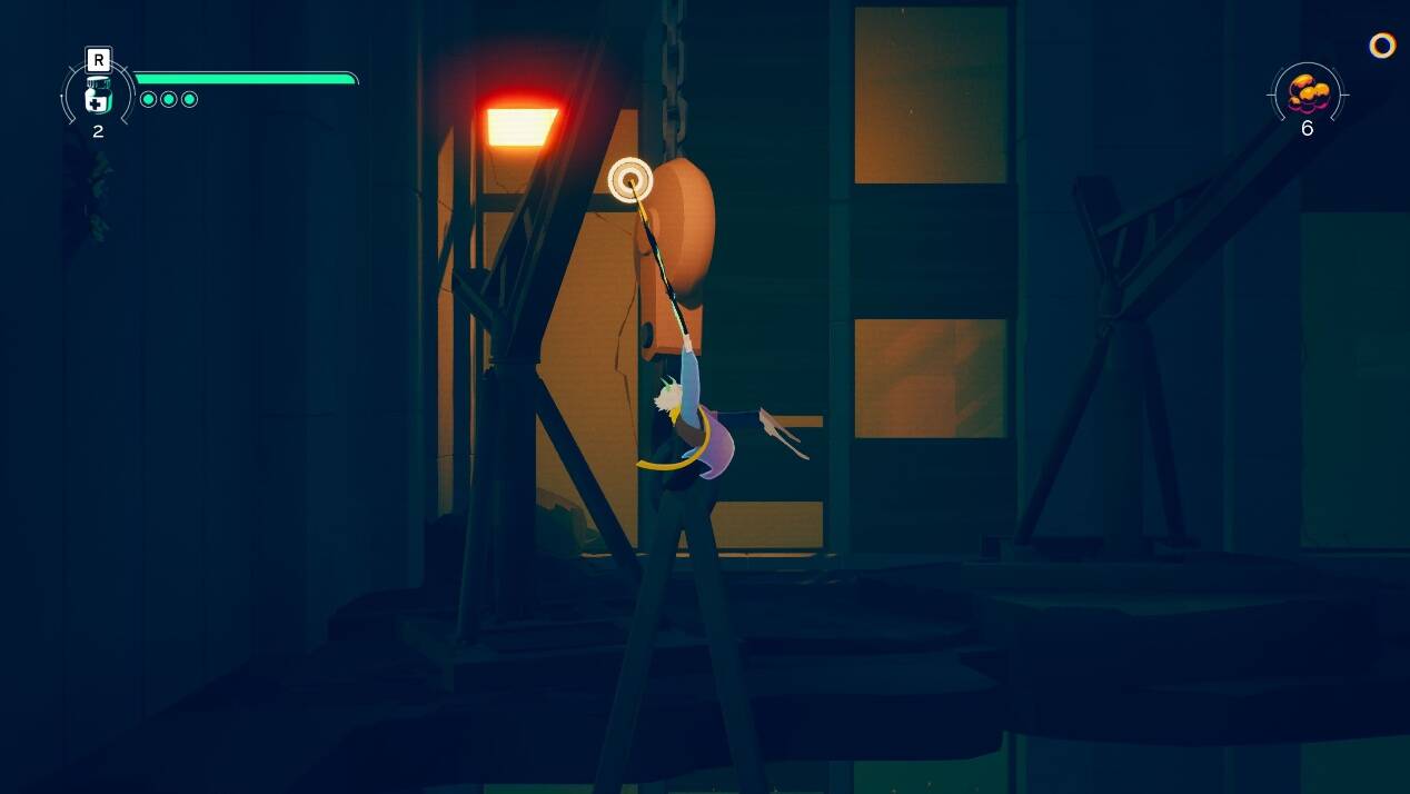 本作战斗的设计上主要采用了老式的横版过关玩法,在大部分的探索场景中,初次都需要经过一个在封闭房间中进行连战的环节来“解锁地图”。游戏中,玩家通过流程解锁各式各样的能力,具体形式包括但不限于钩锁、护盾、下冲等内容,并且同时提供战斗和地图探索能力。