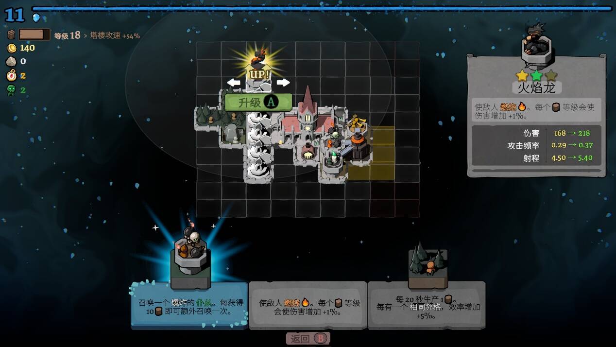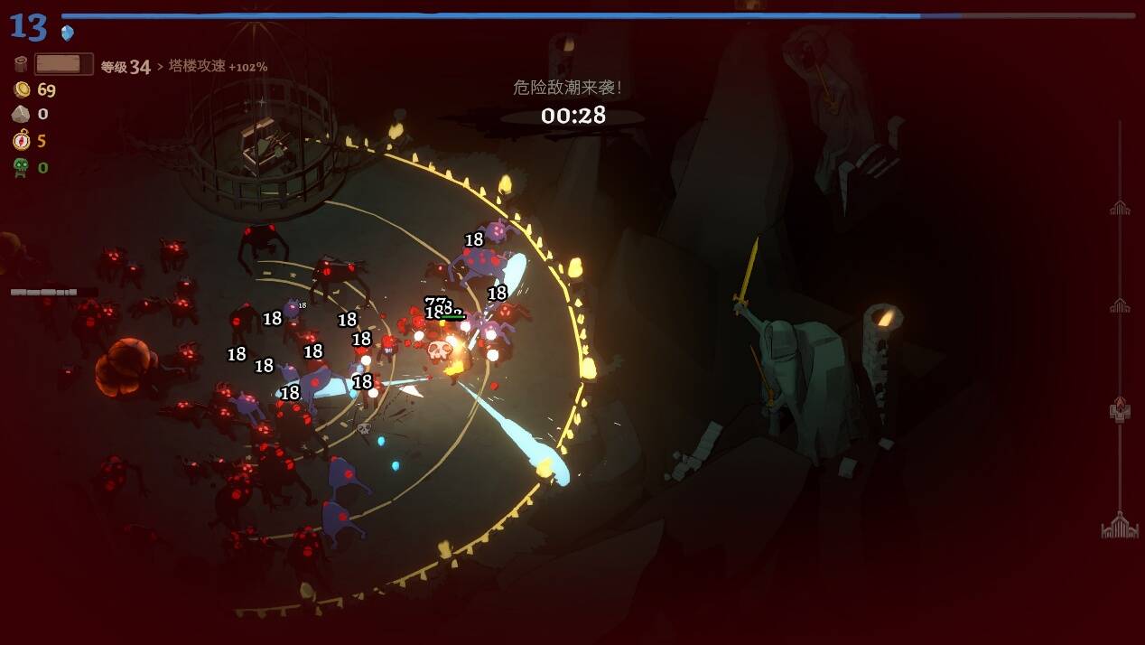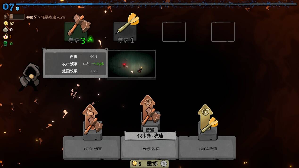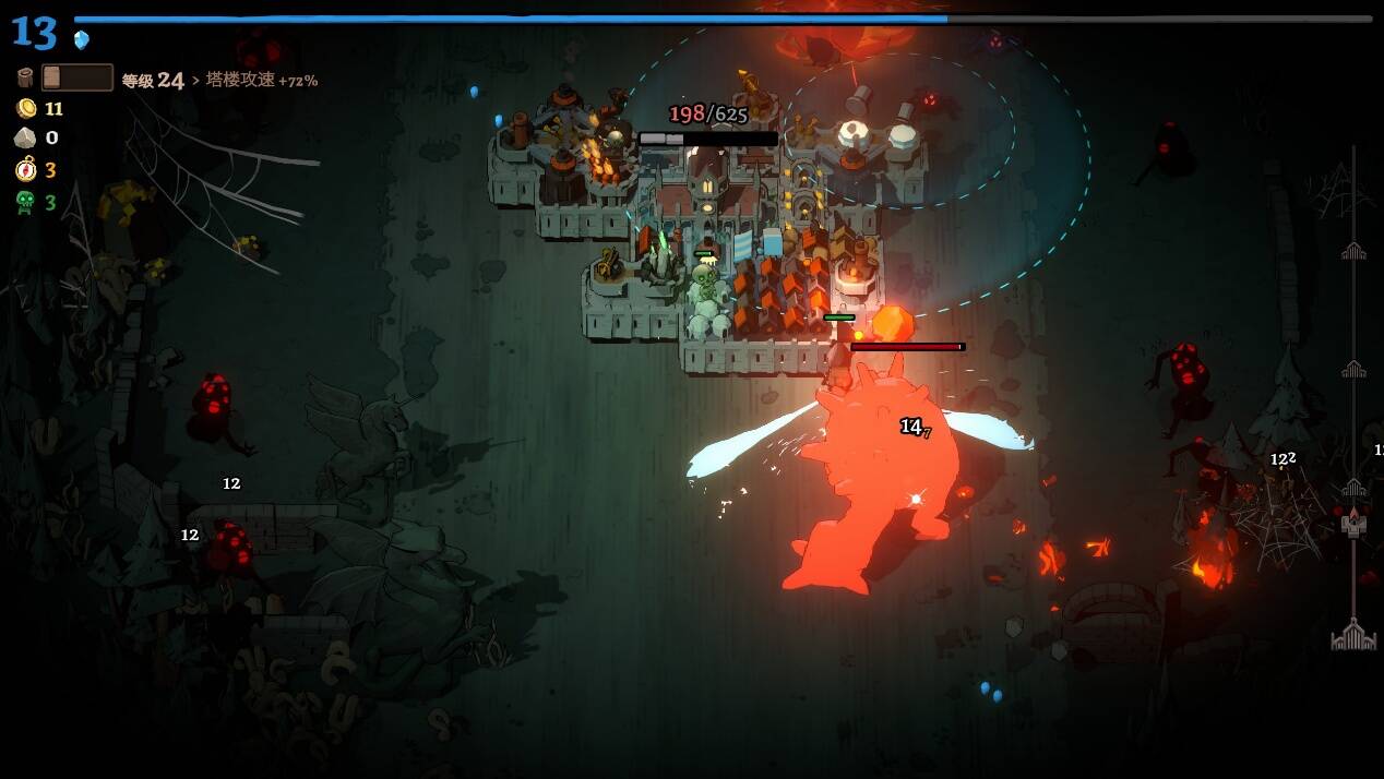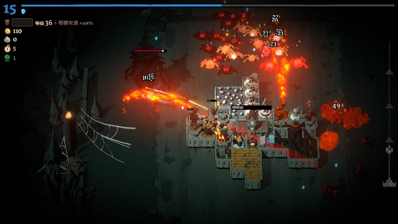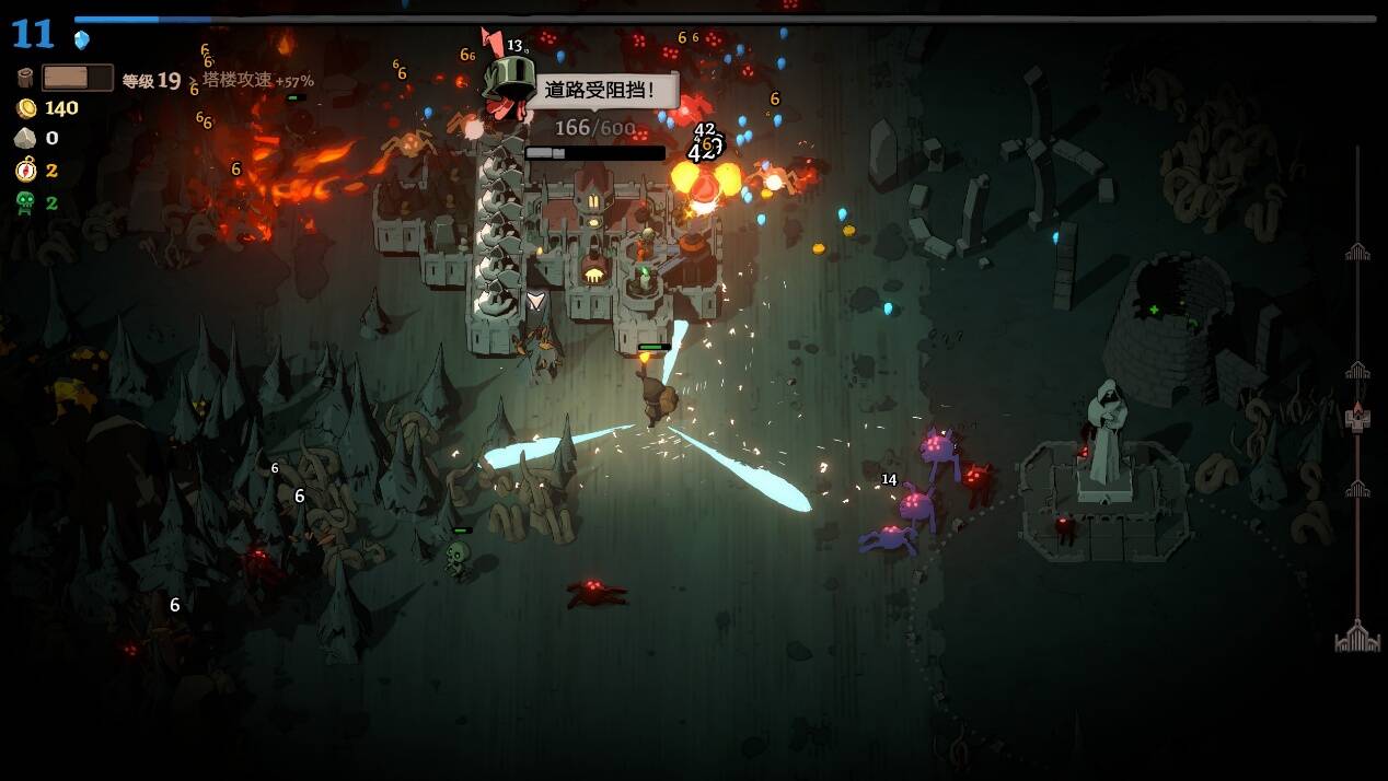 有趣的是,塔楼不仅会增长玩家的战斗力,还会扩大建筑的体积 ,使得其需要更旷阔的区域才能正常维持通行。同时,玩家也需要清理地图上的各种障碍物来获取资源并提升英雄相关能力。