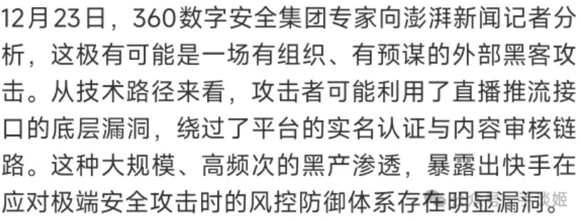 目前,快手还没有对此次事件向公众做出回应,我们也不知道具体哪里出问题了,不过姬估摸着,今年快手安全部门员工的年终奖大概是没了。不管如何处理,快手这次真的是被狠狠地上了一课,这也为其他网络公司提了个醒。