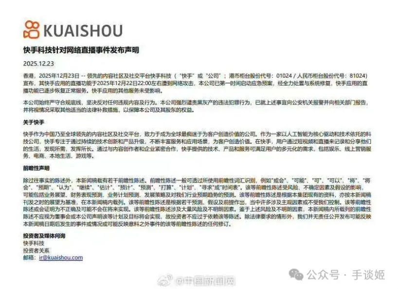 23日上午,大量媒体报道了快手这次大瘫痪,经过媒体对快手公司的采访得知,昨晚快手公司的遭受网络攻击导致大量黑产账号流入,造成了昨晚的局面,目前已报警。
