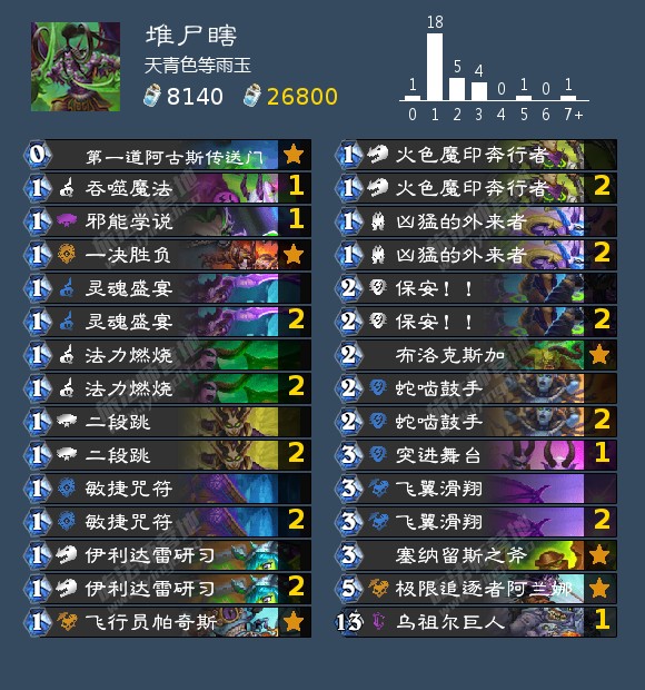 然而也有一些老将,曾经风光无限,却随着环境流转与节奏加快,渐渐因费用笨重、节奏脱节而被遗忘在收藏夹的角落:那些依赖复杂 combo、追求后期大场面的卡组,如墙德与模块术,往往被一记“神雷诺”彻底逆转节奏;慢速启动、伤害集中但核心单一的 OTK 套路,则容易被脏鼠、换手等针对性手段牢牢克制;至于那些进攻不够凌厉、又缺乏群体解场与续航能力的快攻卡组,也常在优质 AOE 技能面前黯然退场。还有一些老卡,设计虽有趣味,却始终未能真正踏入主流的大门。而我偏偏钟意于这些旧日遗珠,总爱构筑一些带着怀旧气息的“地沟油”卡组,哪怕是在休闲对局中挨打也乐此不疲。