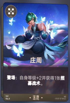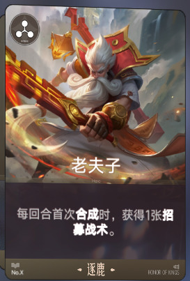 老夫子和庄周的招募战术(随机获得1张逐鹿英雄牌)能够缓解你商店刷牌的压力,定向获得逐鹿英雄牌。