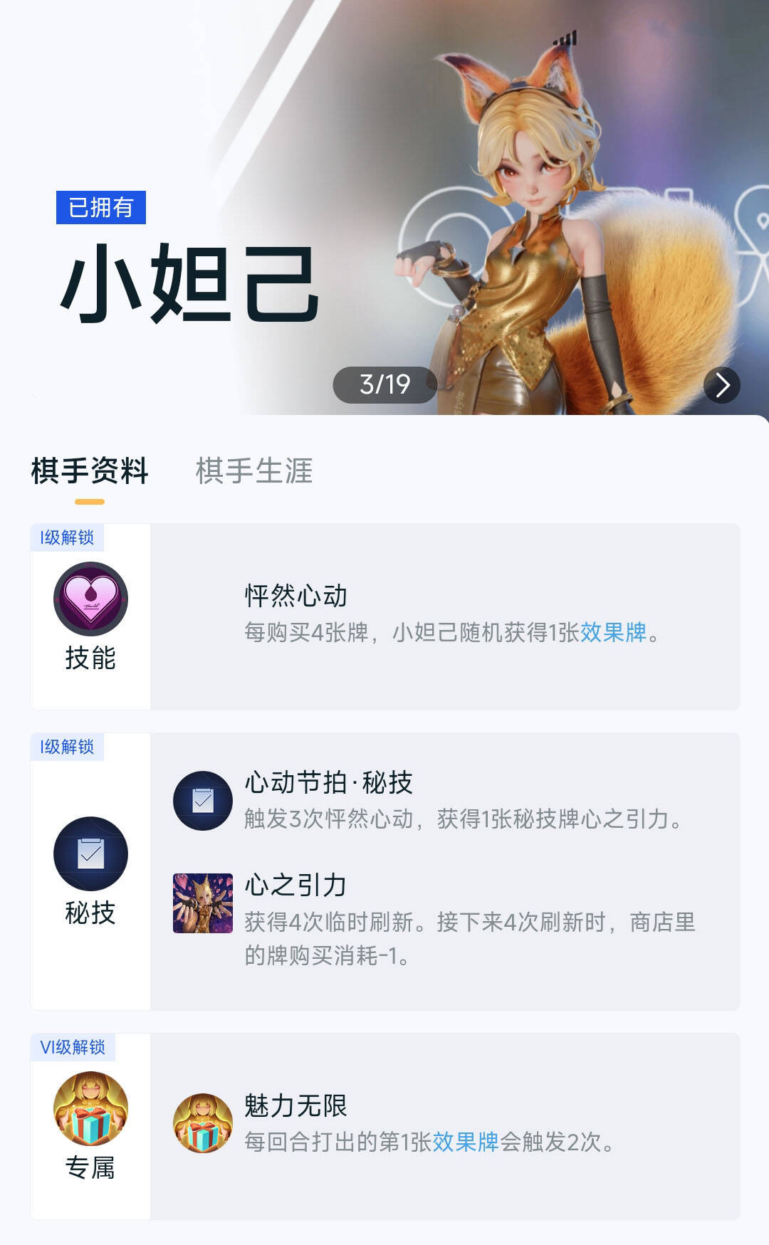 小妲己在抢公共牌库的时候,优势很大,在竞争激烈的对局中,我个人是更喜欢用刷牌效果好的棋手,尽早成型,尽早开刷,稳定性更高。