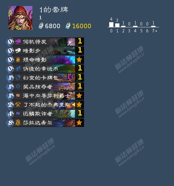 幻变的卡牌包&芬利:曾经卡包贼的成名绝技,有的宇宙贼不带芬利,原因是芬利不能配合迅鳞欺诈者烧树。笔者实战体验下来对芬利的需求还是挺高。借助弑君者可以抽芬利这一特性,携带卡包配合过牌,提高上限。并且卡包开出的随机性偶尔能帮助取胜。