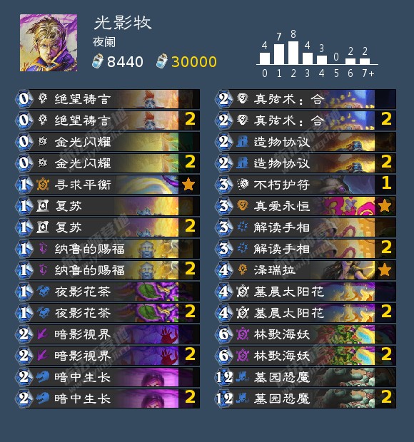 个人比较偏好30的宇宙猎,因为宇宙猎在对局体验上,实际上更需要在对应的对局里能及时找到需要的牌,所以个人更倾向于提高核心卡的密度。