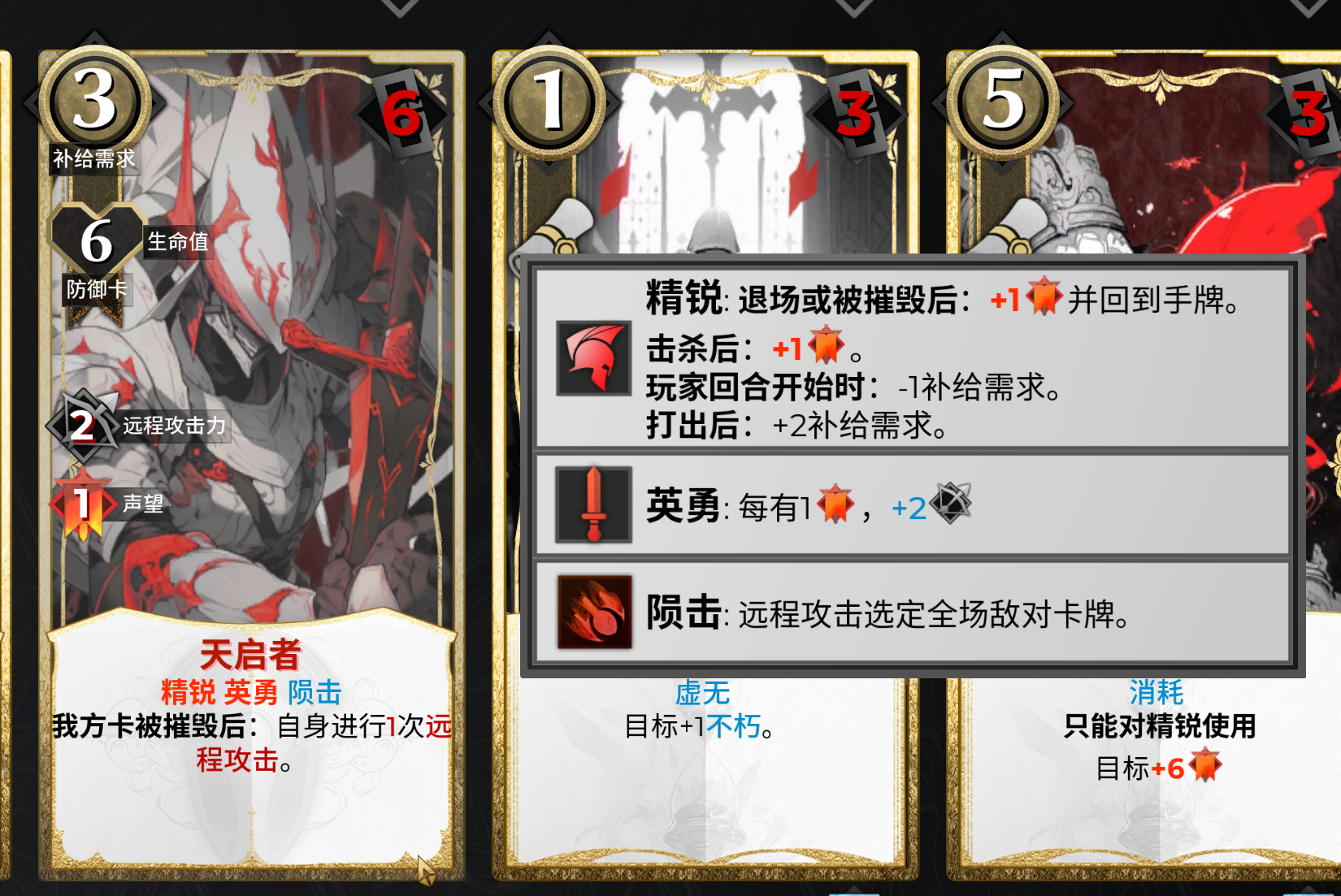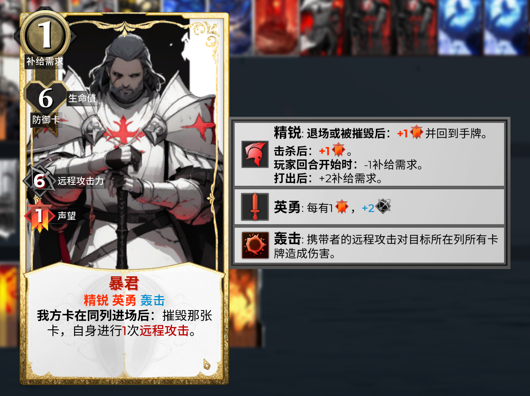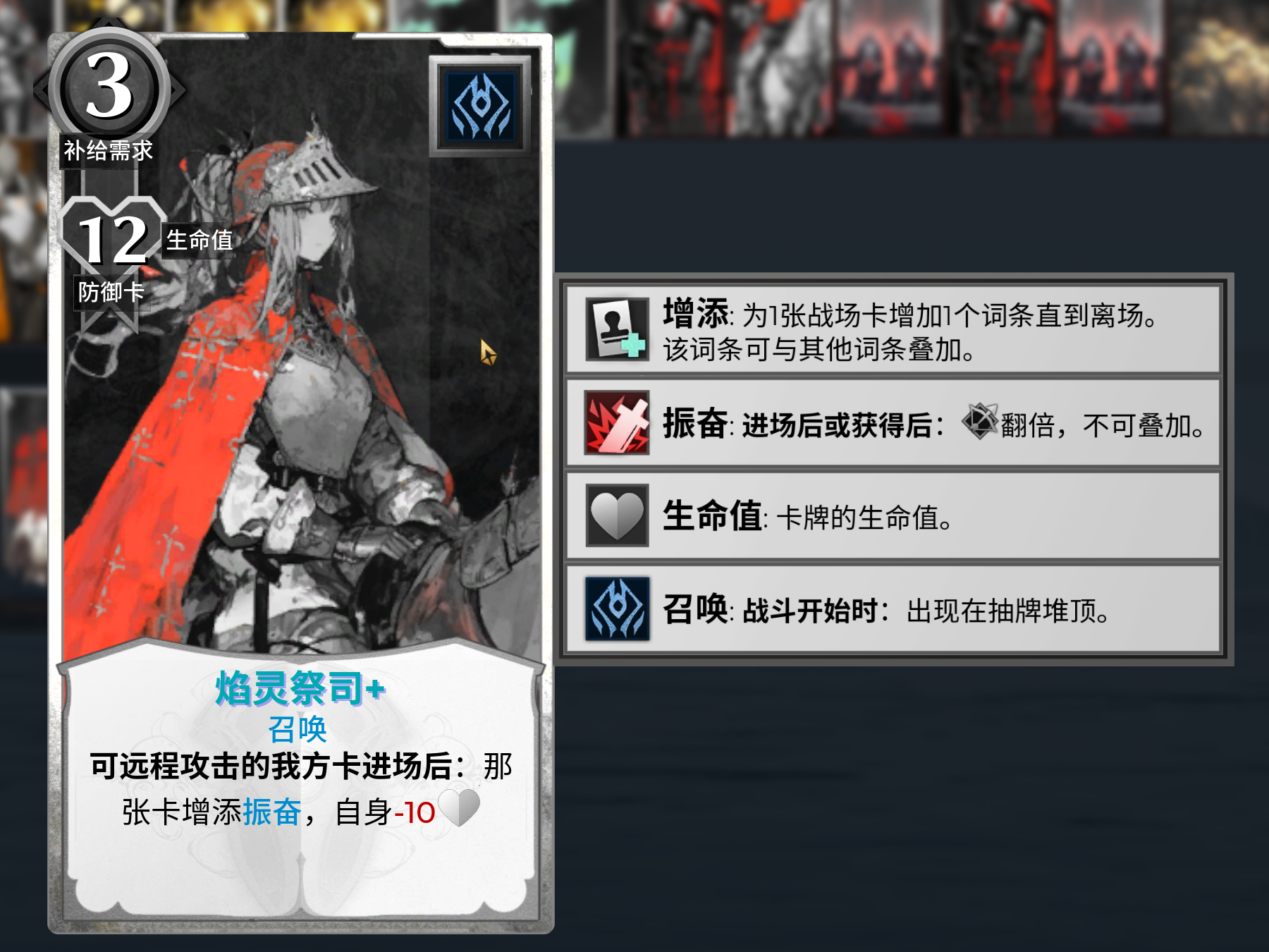 最好能打个召唤词条,可以让攻击类的单位进场就获得翻倍的伤害,如果没有召唤也不必为了振奋效果而延后攻击单位的布置,拿1张就可以了