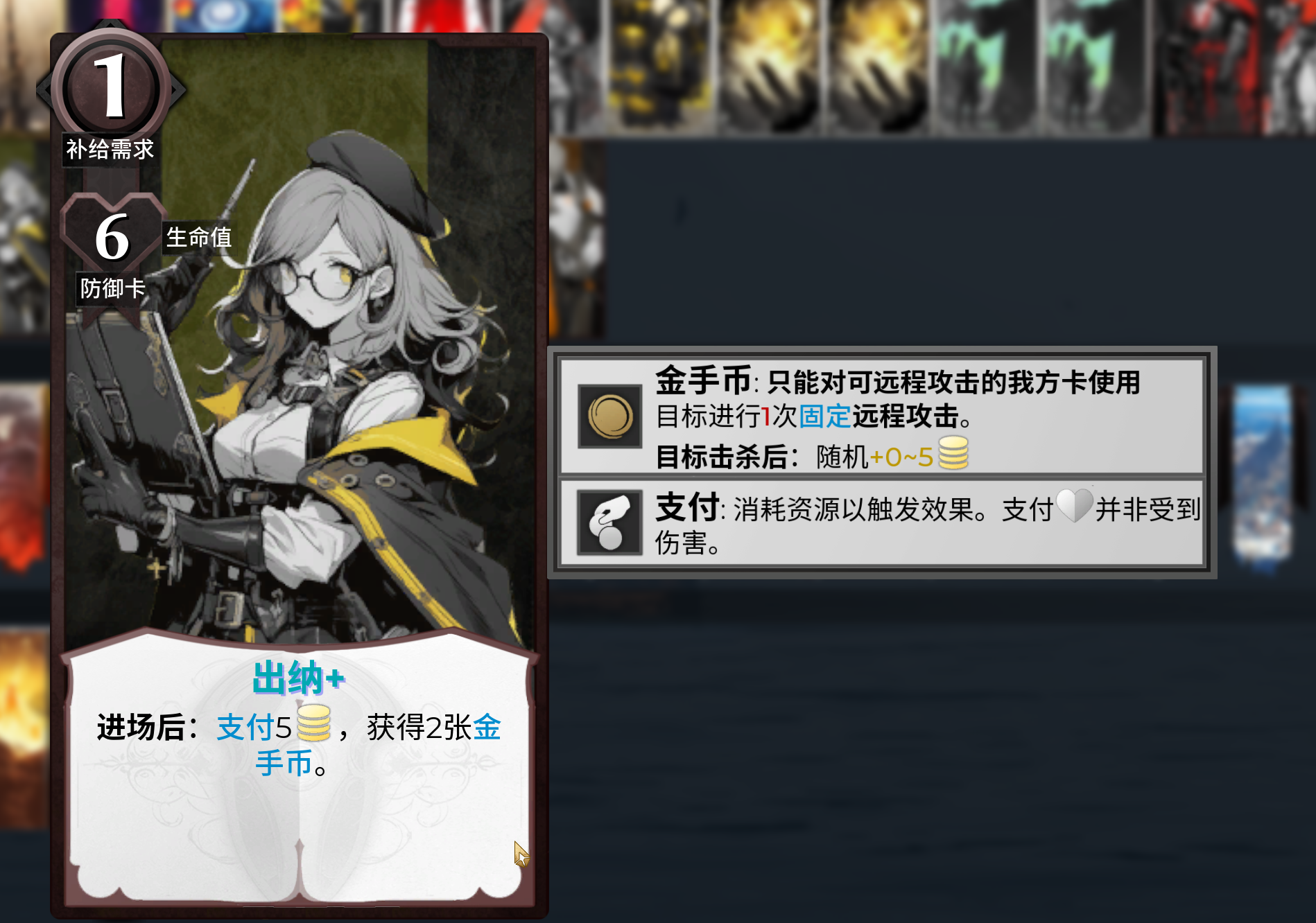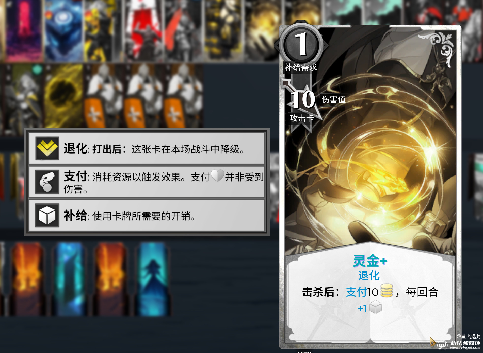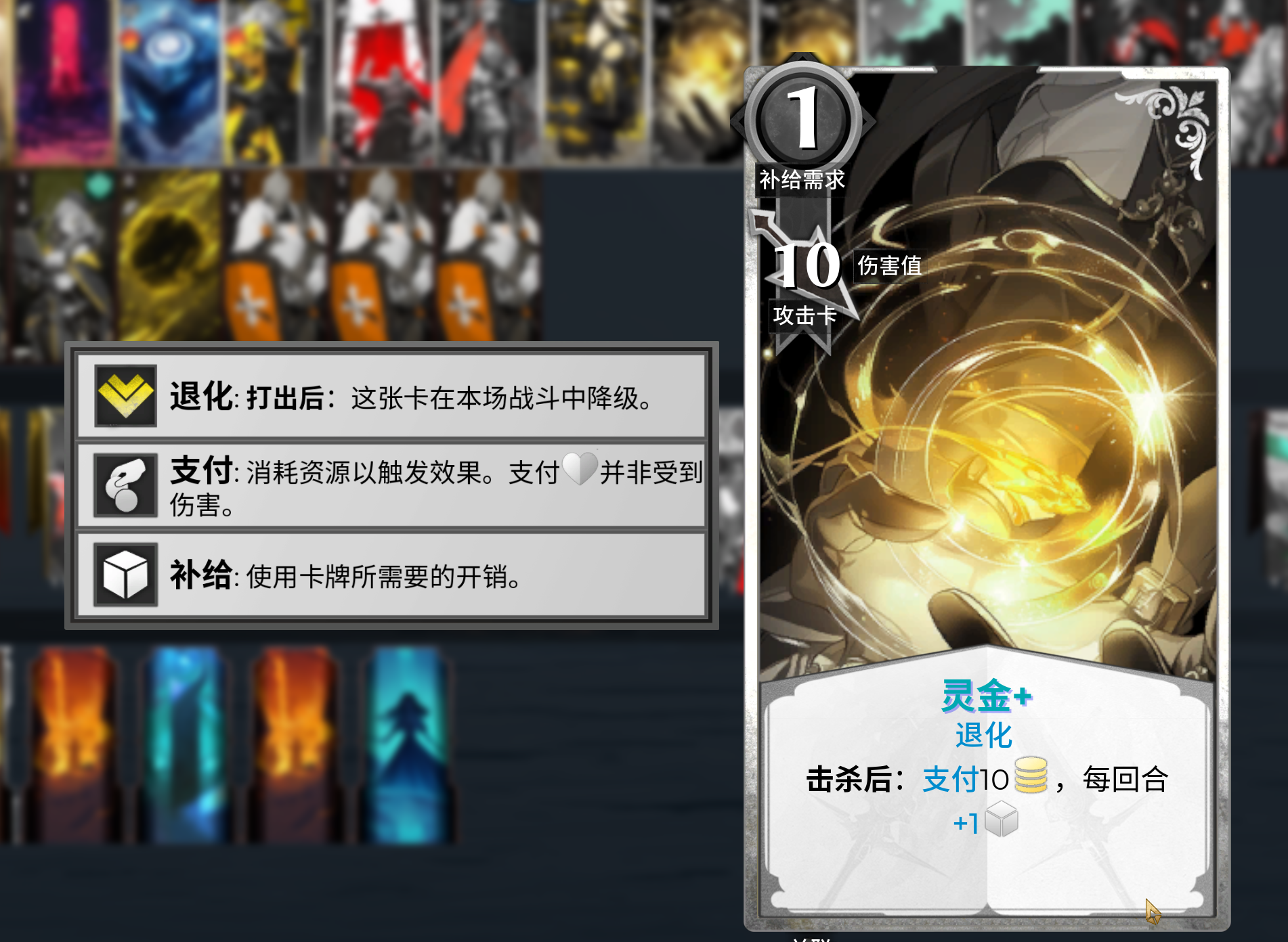 这张虽然是攻击卡,但我们需要的是每回合+1补给的效果,在退化之后击杀敌人还能获得金币,非常实用,可以拿1-2张