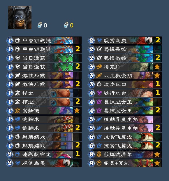 如果卡组有乐队经理精英牛头人酋长 或 奇利亚斯豪华版3000型 ,则详细卡图底下会显示相应的卡。