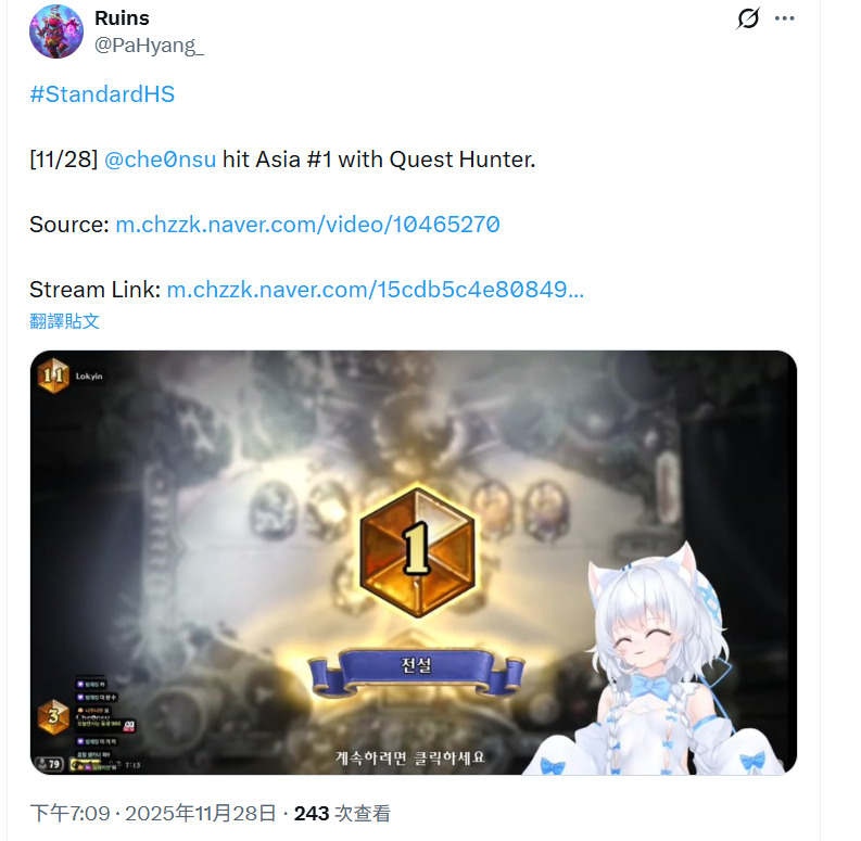 [标准] Che0nsu (外服最终季季后赛冠军) 亚服登顶 任务猎 视频