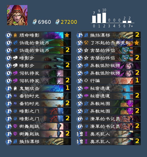 如果卡组有乐队经理精英牛头人酋长 或 奇利亚斯豪华版3000型 ,则详细卡图底下会显示相应的卡。