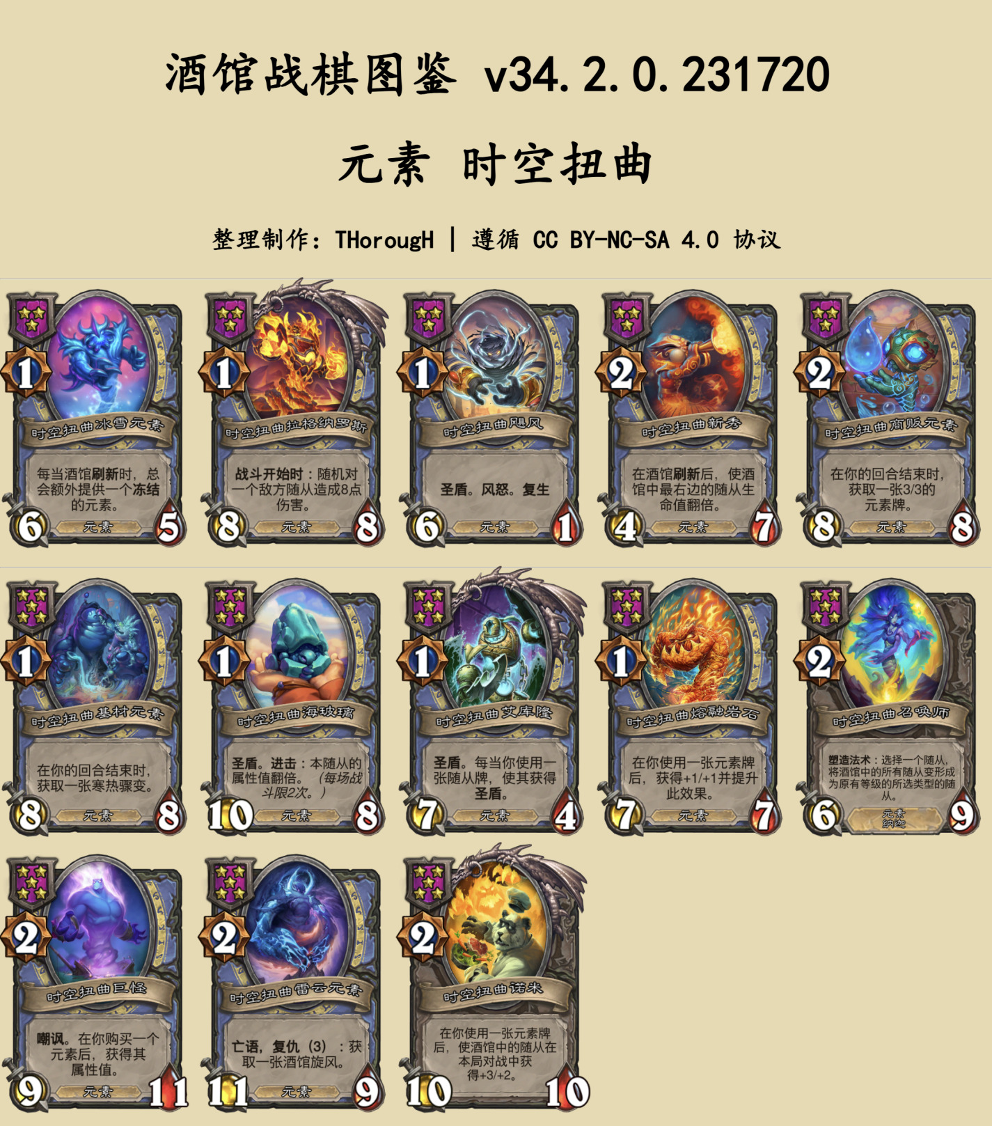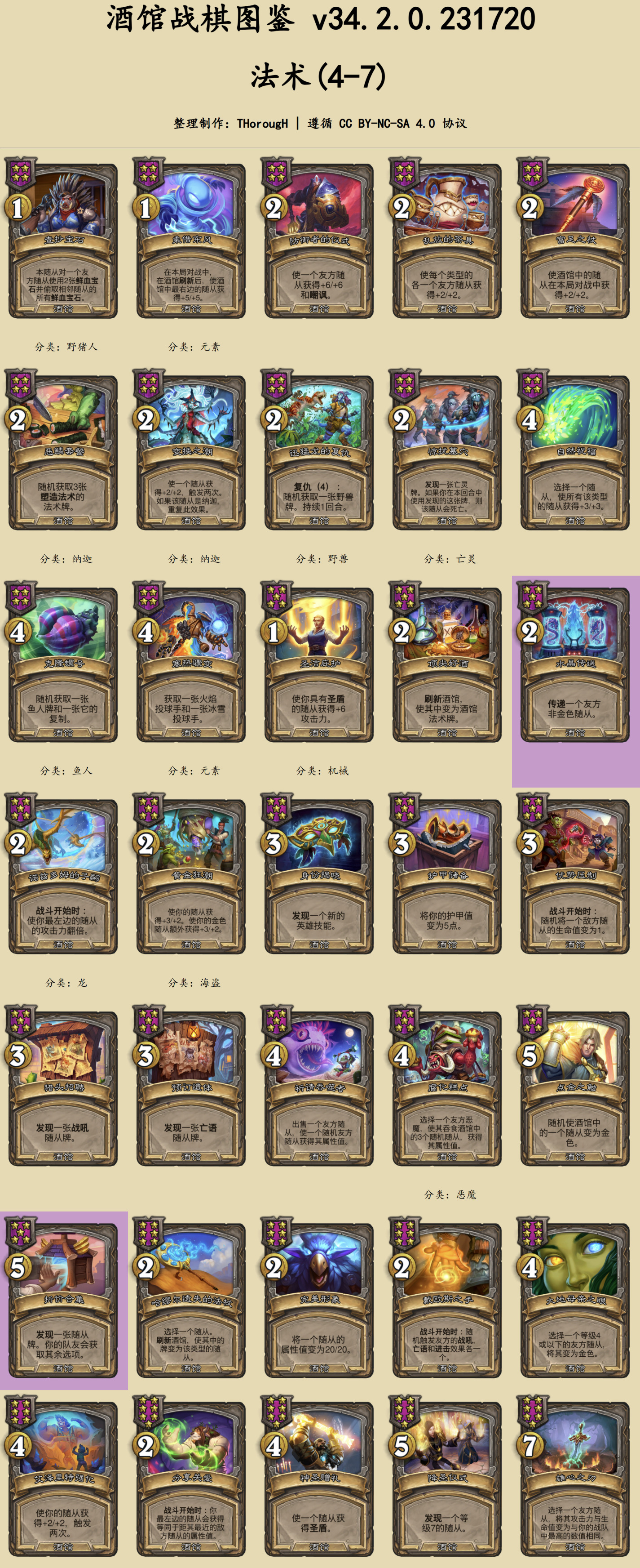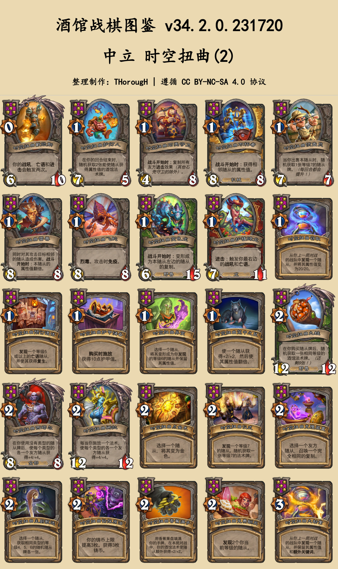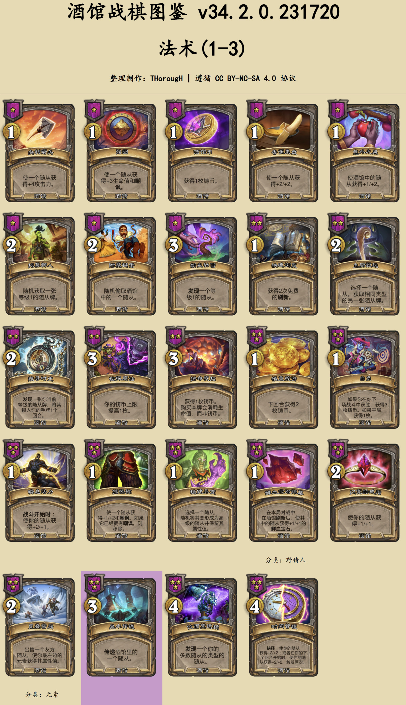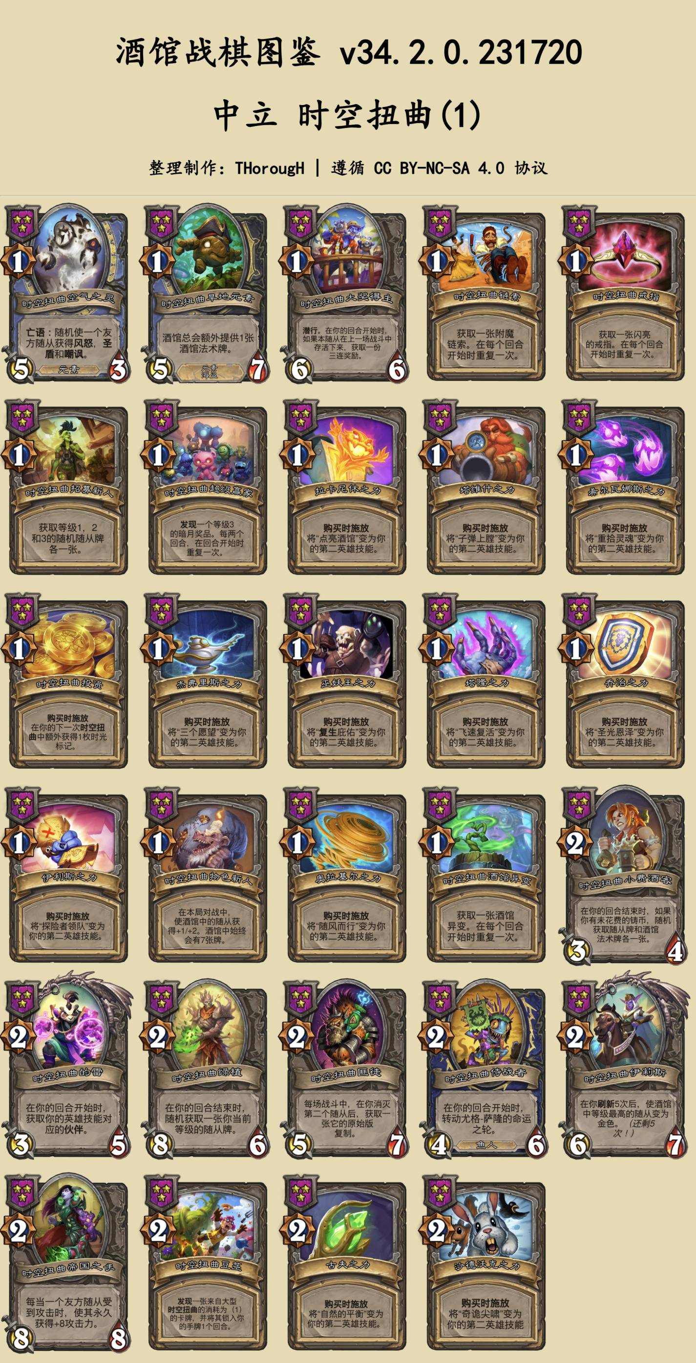 本篇图鉴分为两部分:常规的随从与法术、时空扭曲酒馆。