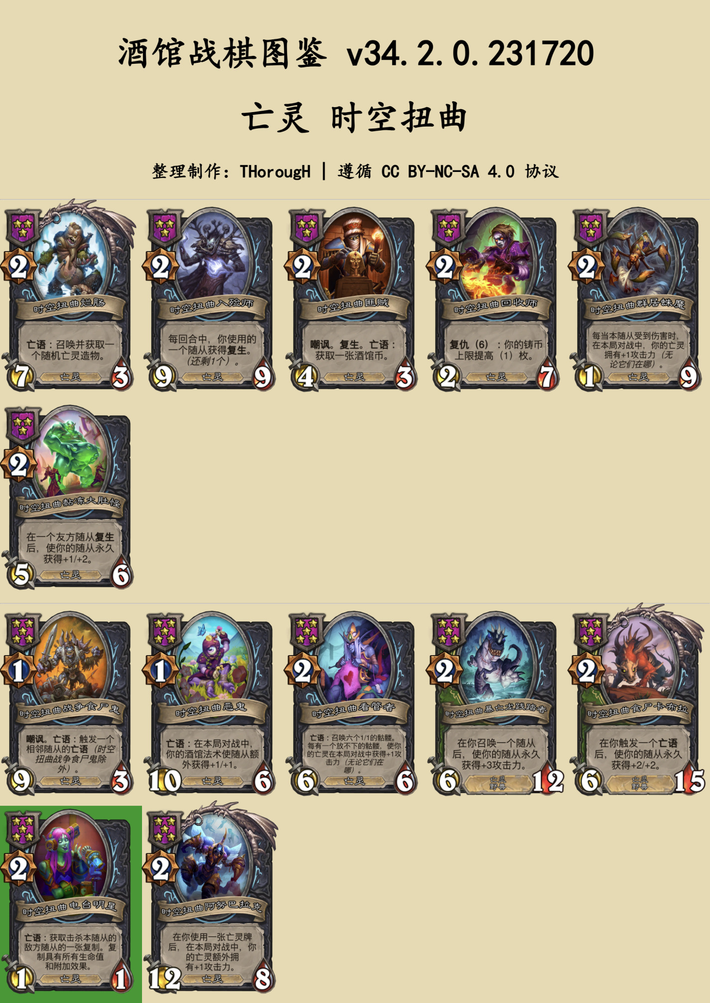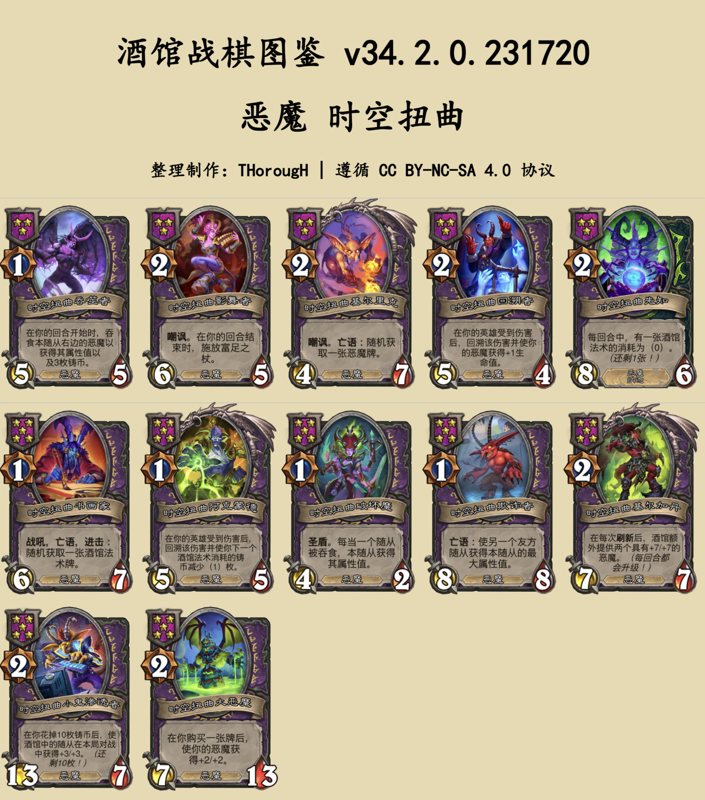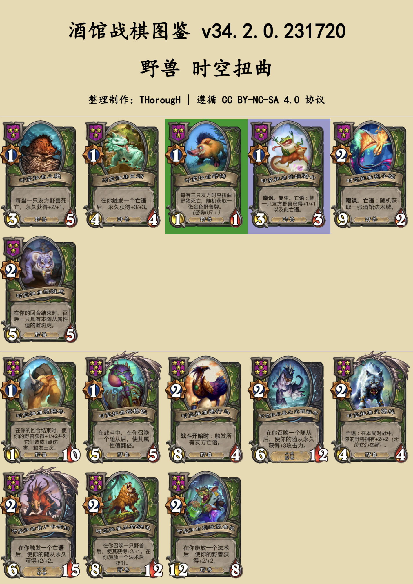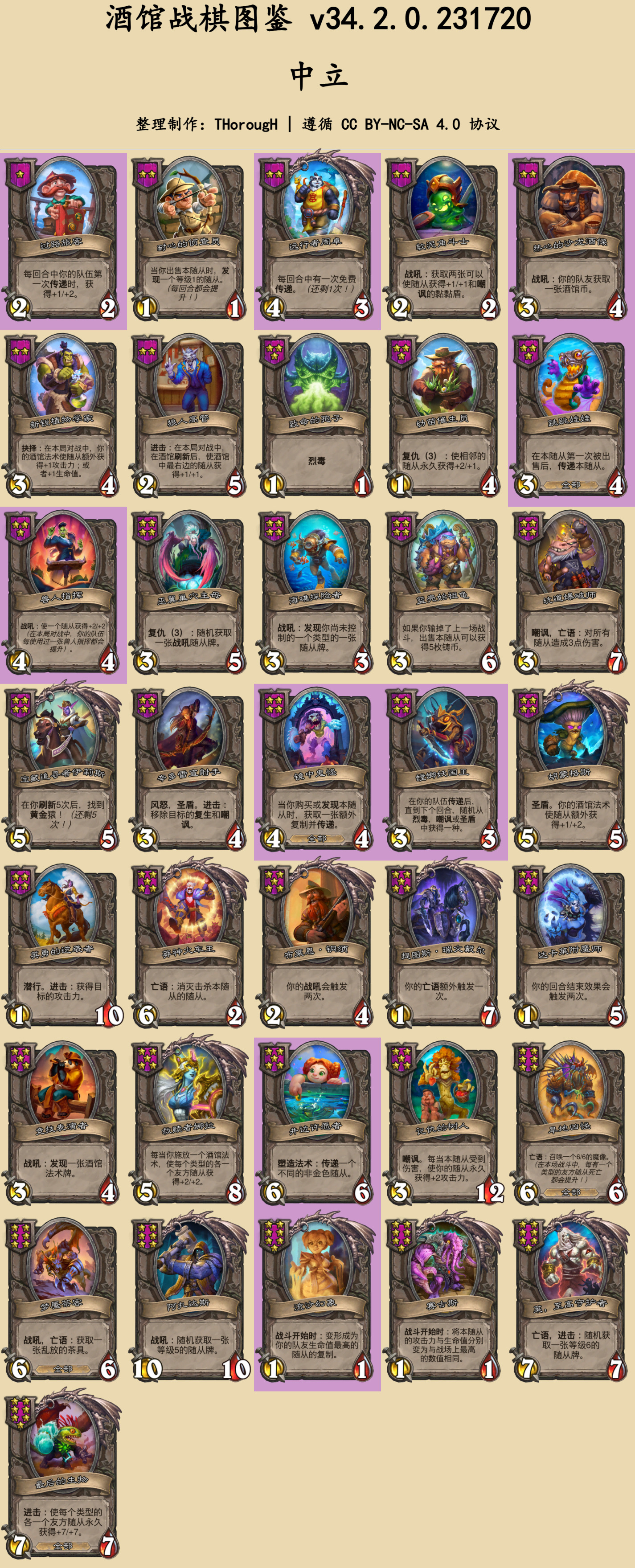 本篇图鉴分为两部分:常规的随从与法术、时空扭曲酒馆。