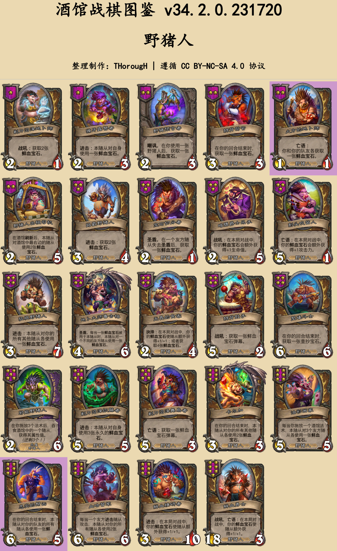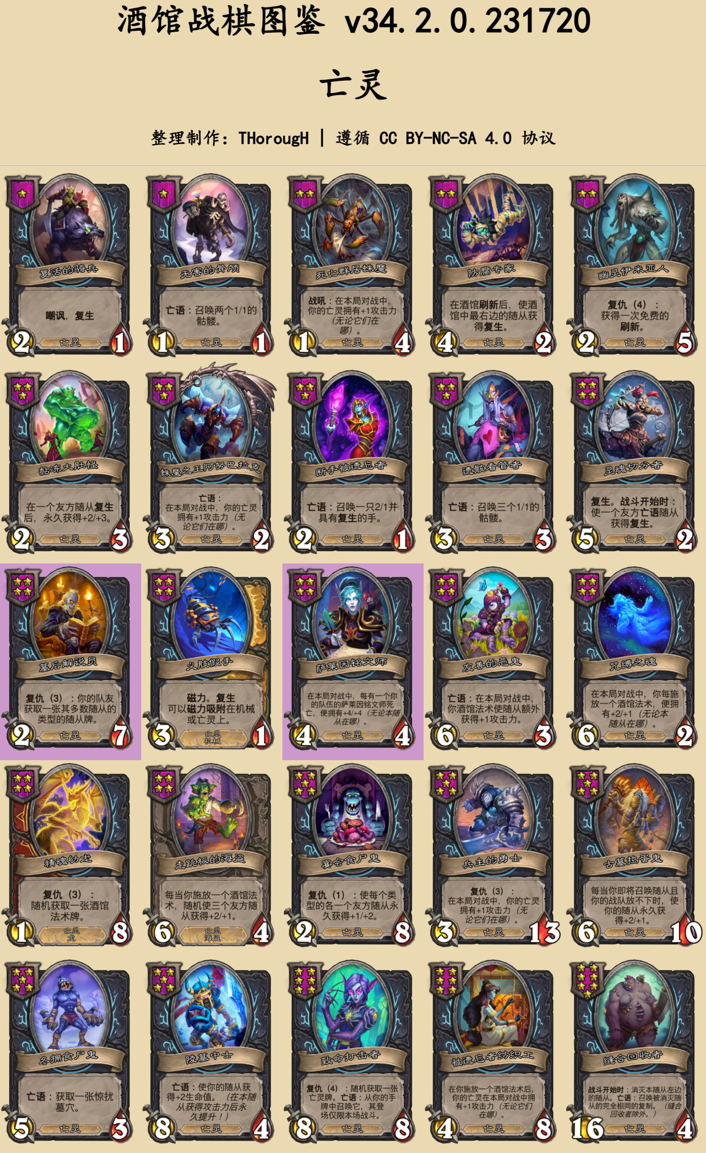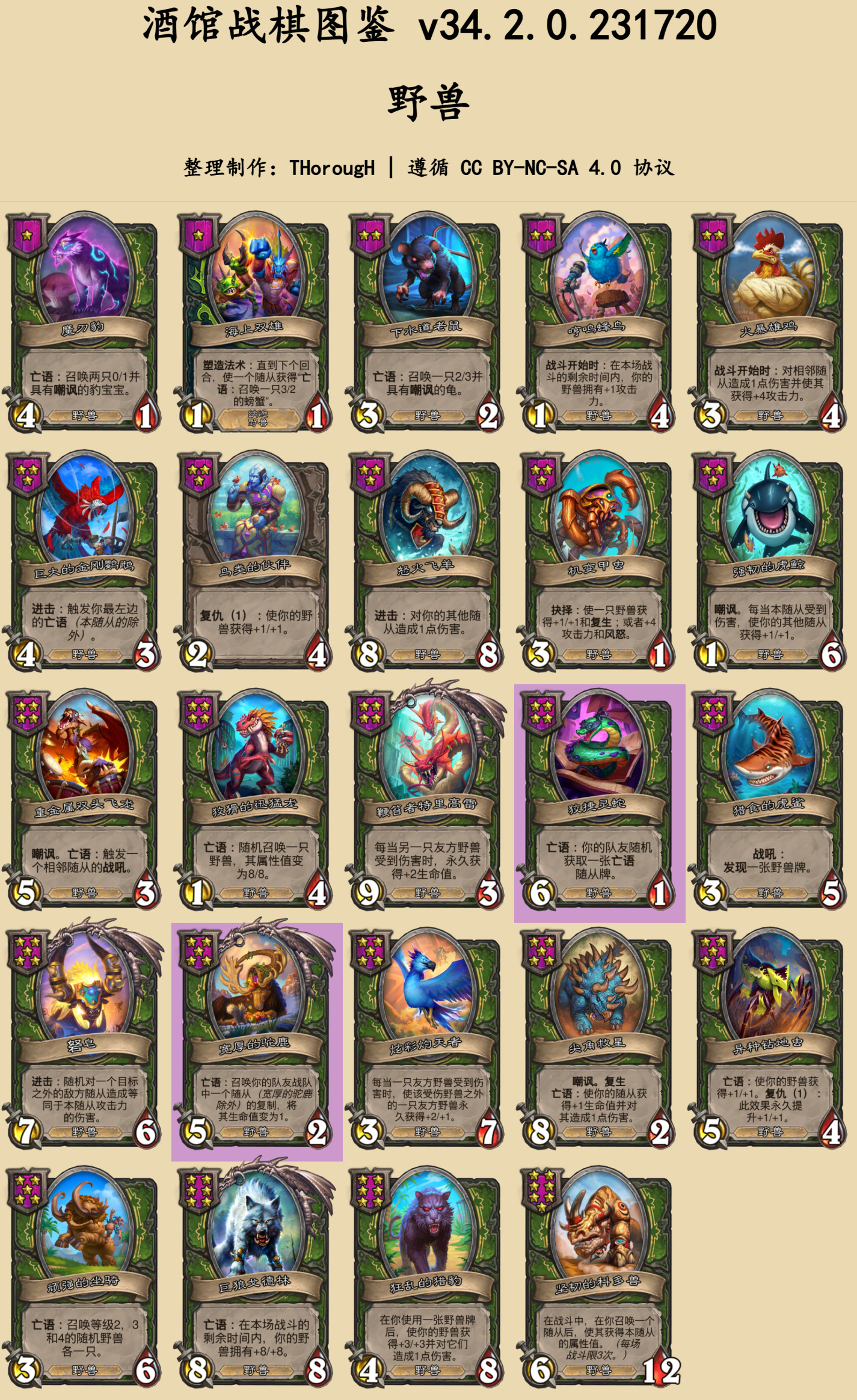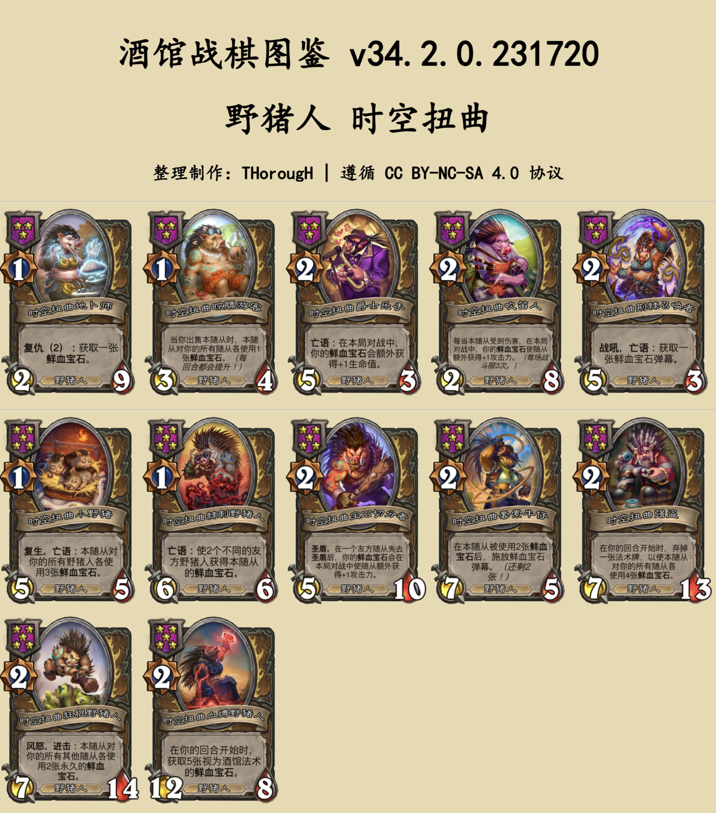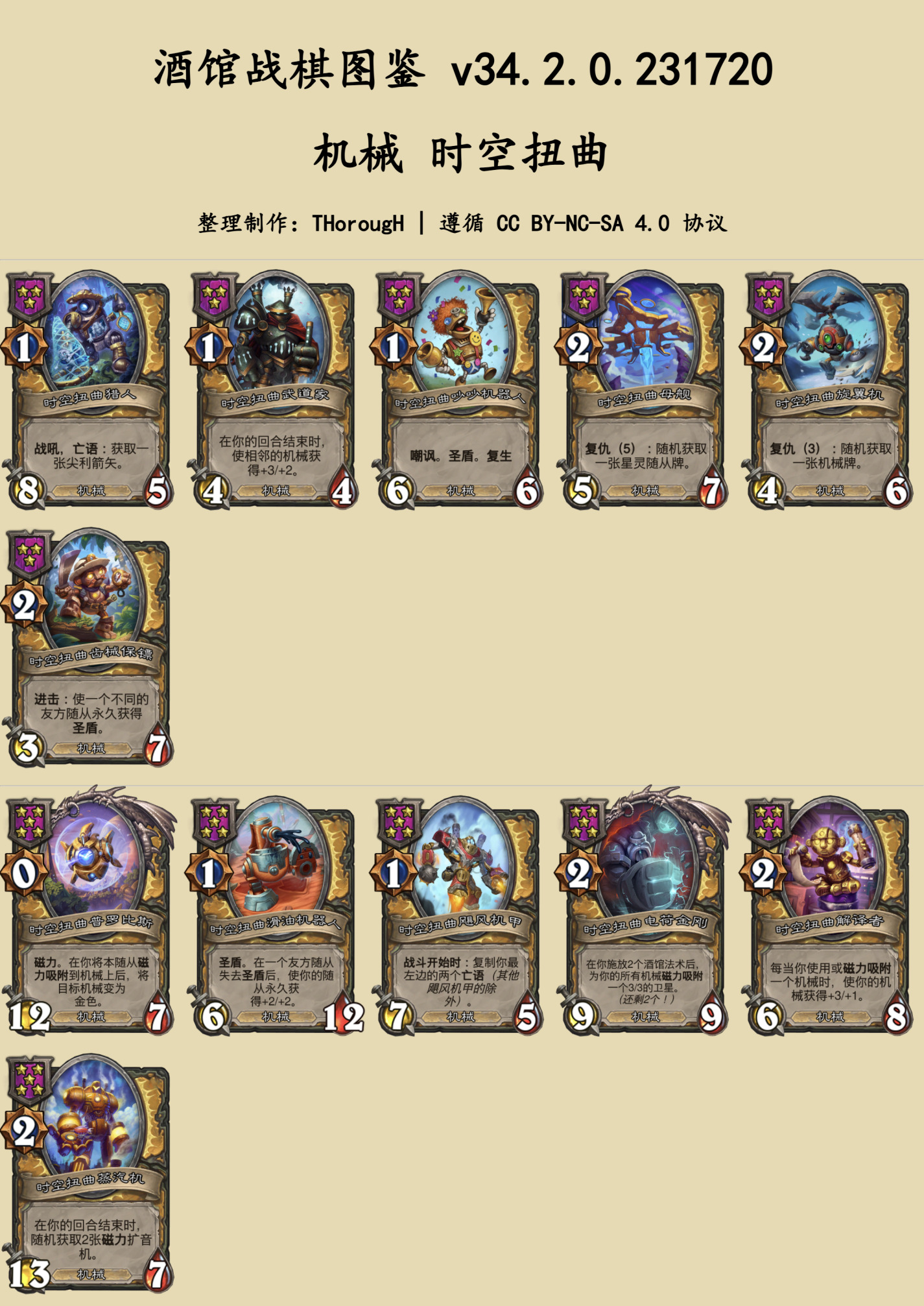 本篇图鉴分为两部分:常规的随从与法术、时空扭曲酒馆。