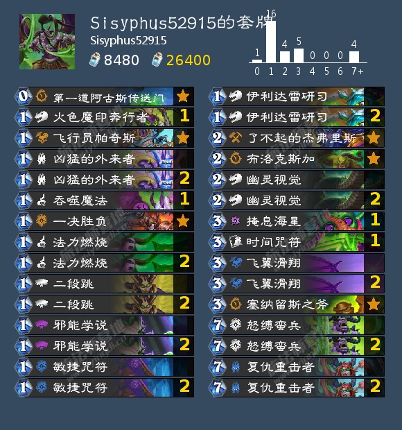 总体玩的思路营地卡组里面都有介绍 就自己改了一张牌把单体沉默改了一张海星来过墙 大部分时候都能决胜