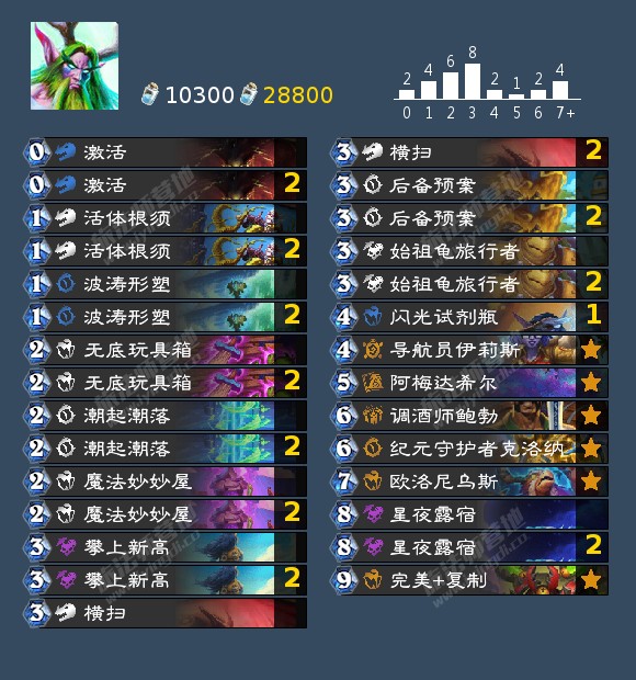 如果卡组有乐队经理精英牛头人酋长 或 奇利亚斯豪华版3000型 ,则详细卡图底下会显示相应的卡。