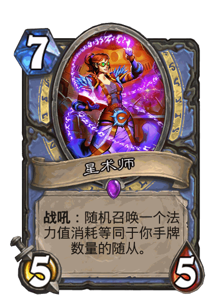 “一人成军”,以“半稳定随机性”(发现,释放多少费用或者次数的法术,随机并减费)为核心的很有意思的构筑思路,后续在巫妖王进军版本补强了一张“手牌愚人”能量塑形师。属于玩具卡组。