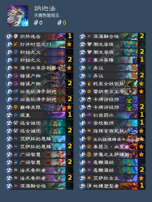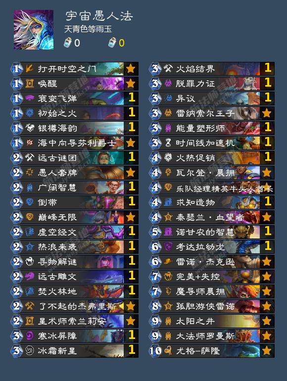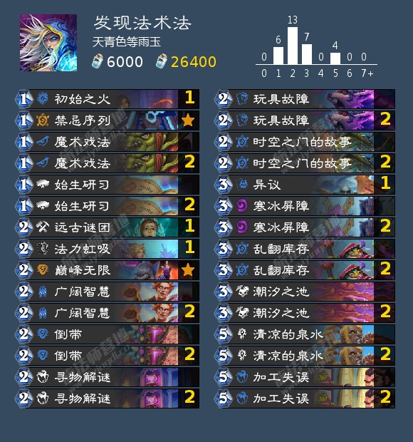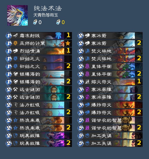 5.由于哀绿已死,目前我这里没有任何算是成立且合理的法师法术减费otk思路,实在抱歉,如果想玩这类建议目前移步德鲁伊卡组(),或者先拿奥术哀绿望梅止渴,各位如果有思路的也欢迎在评论区分享。