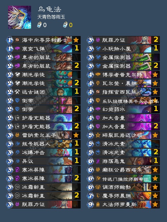 龟法就是以防御类法术复用为基础,幻觉药水大法师罗曼斯为核心,无限复用随从和复读法术为致胜点的控制卡组,目前属于兵器卡组。