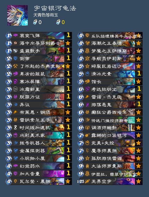 如果真想玩银河法笔者建议和其他思路融合,这里给出一套融合思路的宇宙银河龟法构筑如下: