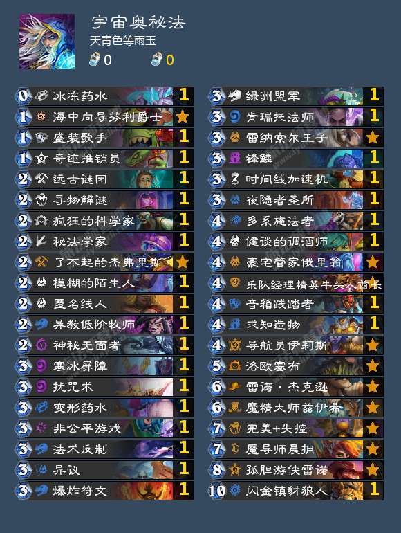 (不建议玩宇宙奥秘法,因为优质奥秘太少了,加上宇宙卡一出来还能帮助对手排除奥秘情况,无法发挥奥秘体系干扰优势。)