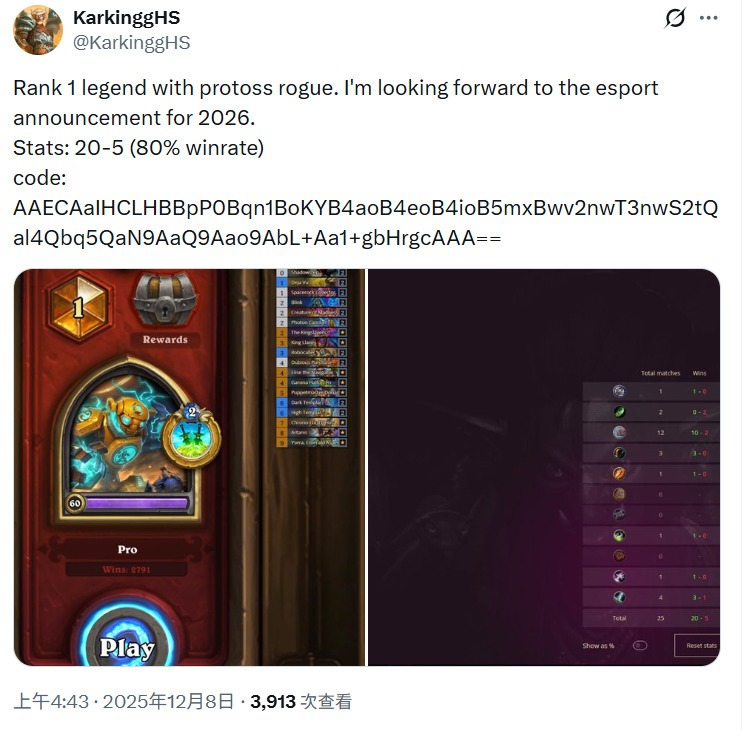 [标准] KarkinggHS 欧服登顶 星灵贼 20-5